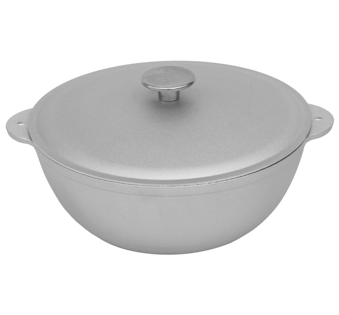Союзгриль Казан алюминиевый с крышкой, 8 л - легкий и удобный на большую компанию, за счет толщины стенок пища равномерно подогревается, имеется ручка-дужка, идеально подойдет для приготовления плова, супа, рагу и других блюд на углях, электрической или газовой плите