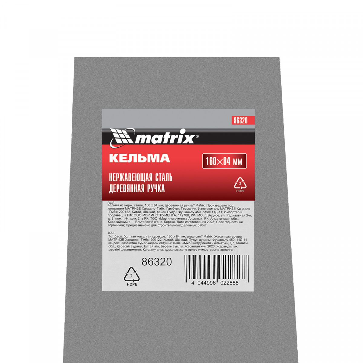 Кельма из нержавеющей стали, 160 х 84 мм, деревянная ручка Matrix