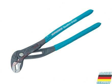 Клещи переставные торговой марки GROSS предназначены для вращения и фиксации труб, фитингов и прочих слесарно-монтажных работ. На зажимных поверхностях губок присутствует паз для захвата и удержания гвоздей, проволоки. За счет небольшого изгиба направляющих и смешения нижней рукоятки относительно шарнира, можно осуществлять уверенный захват предметов размером до 50 мм. Изготовлены клещи из инструментальной хромованадиевой стали (CrV). Твердость рабочих частей составляет 55–59 HRC. Обливные обрезиненные рукоятки позволяют надежно удерживать инструмент в руке и предохраняют пальцы от случайного защемления. Подвесная карта обеспечивает удобное размещение на стенде. На инструмент распространяется пятилетняя гарантия.