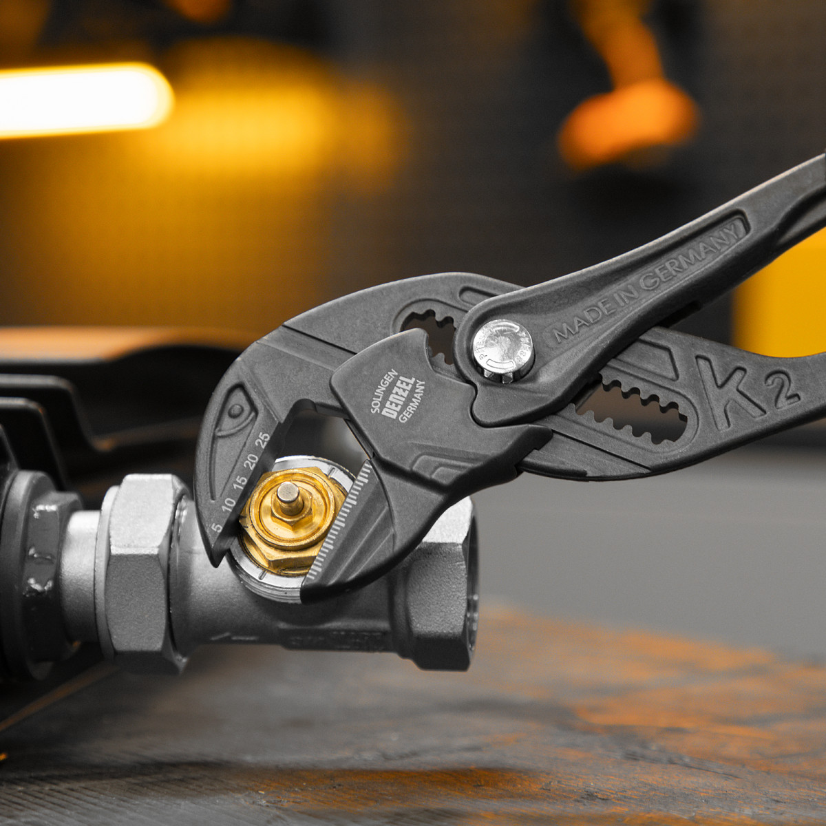 Сантехнические переставные клещи Denzel 17910 длиной 250 мм, с обливными рукоятками и кнопочным механизмом, предназначены для захвата и вращения гаек и фитингов. Максимальная ширина раскрытия губок составляет 50 мм. Губки всегда параллельны, что позволяет равномерно распределять усилие сжатия и избежать повреждения фиксируемого предмета.