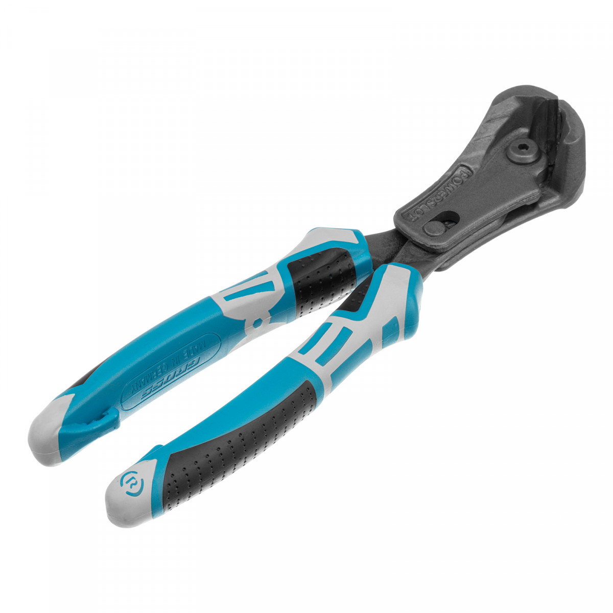 Усиленные торцевые клещи Gross 17990 длиной 200 мм, с рычажным механизмом и трехкомпонентными рукоятками, пригодятся для извлечения гвоздей и других крепежных элементов, а также перекусывания проволоки. Смещенный к режущим кромкам шарнир и оптимально расположенные рычаги увеличивают эффективность работы на 50%.