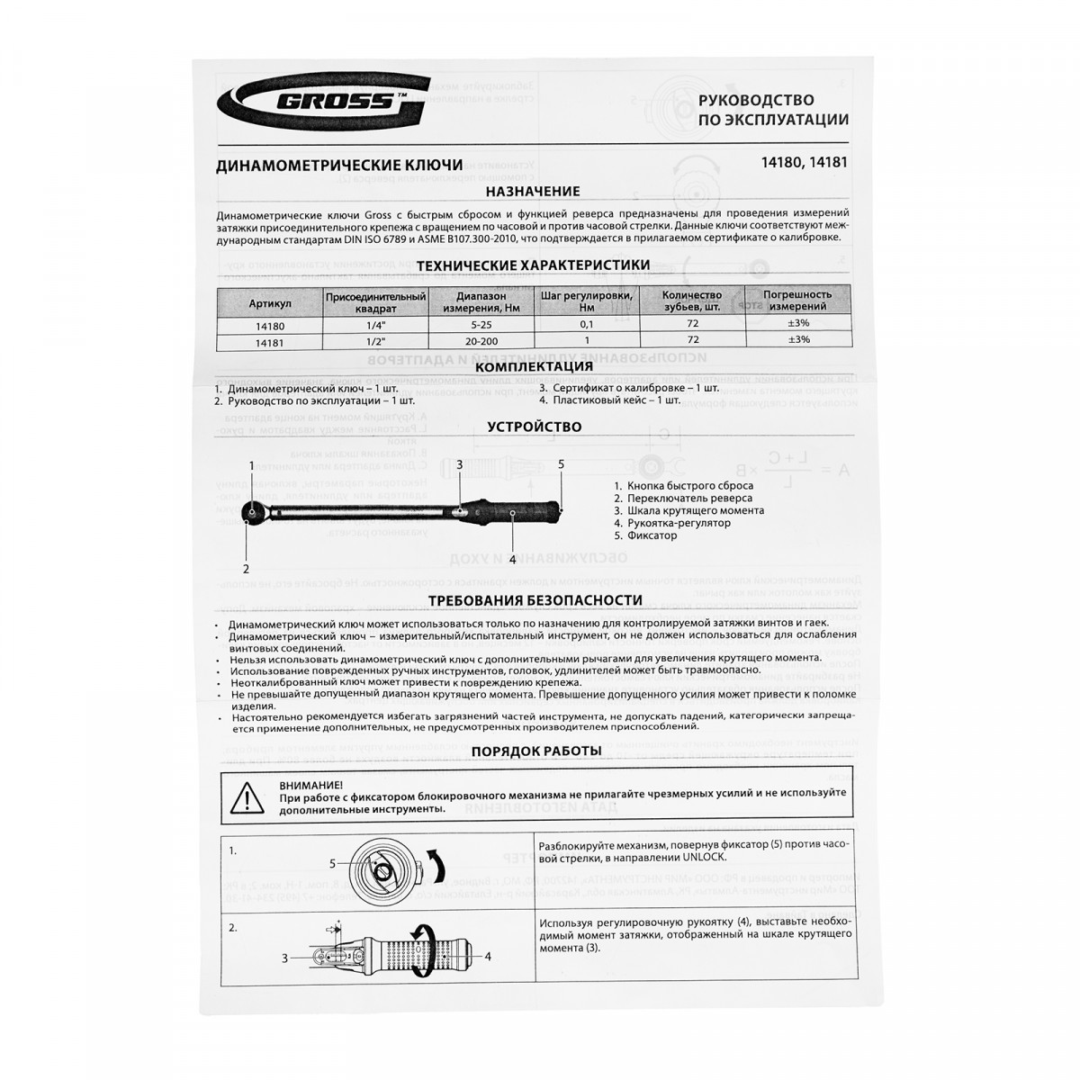 Ключ динамометрический, 20-200 Нм, 1/2", CrV Gross