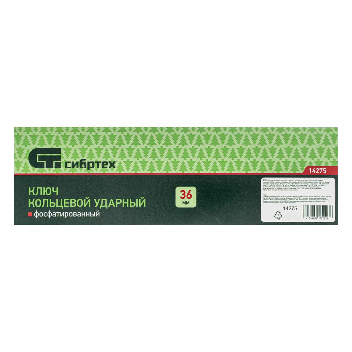 Ключ кольцевой ударный Сибртех 14275 позволяет откручивать и закручивать резьбовые соединения размером 36 мм. Благодаря 12-гранному профилю надежно удерживает головку крепежа. Удобен для работы в ограниченном пространстве — для перестановки его достаточно повернуть на 30°. Инструмент применяется в слесарных мастерских, будет полезен во время ремонта, а также для решения бытовых задач.