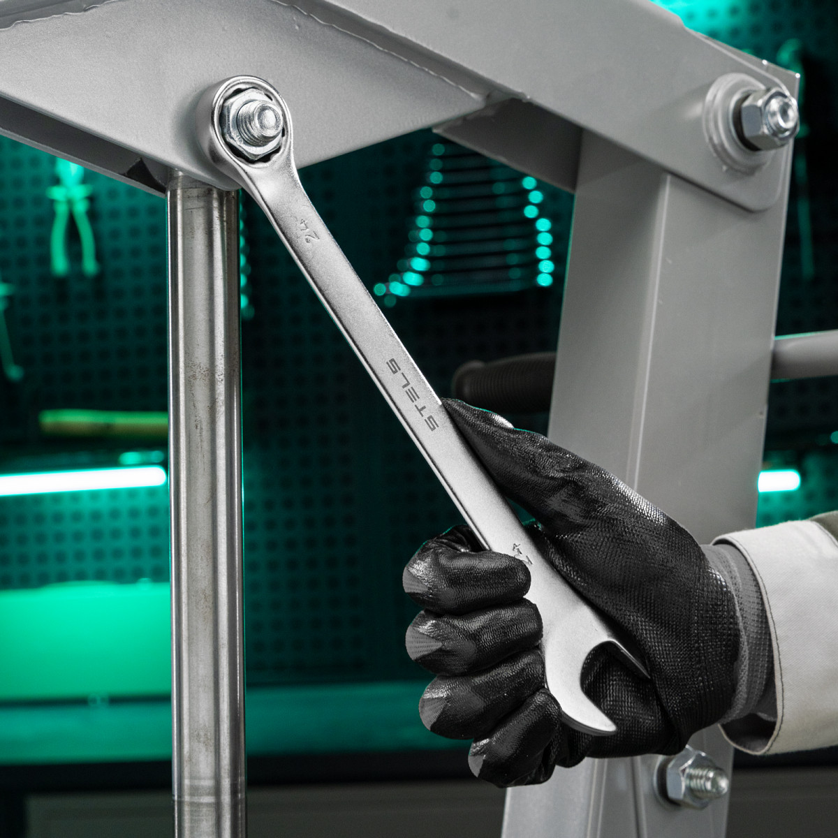 Комбинированный ключ Stels 15217 из стали CrV, 24 мм, покрытый матовым хромом, используется для закручивания и откручивания гаечных и болтовых соединений. Накидная головка имеет 12-гранную внутреннюю поверхность, что облегчает работу с крепежом и уменьшает опасность его повреждения. Ключ применяется в слесарных мастерских и автосервисах, а также будет полезен для решения бытовых задач.