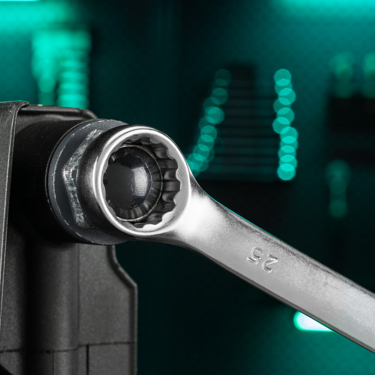 • Комфорт при монтаже в труднодоступных местах — кольцевой зев наклонен под углом в 15 градусов к плоскости ключа.