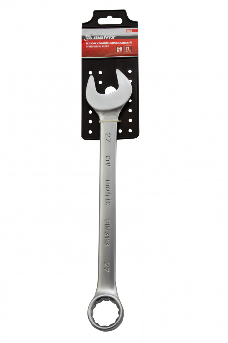 Ключ комбинированный, 27 мм, CrV, матовый хром Matrix