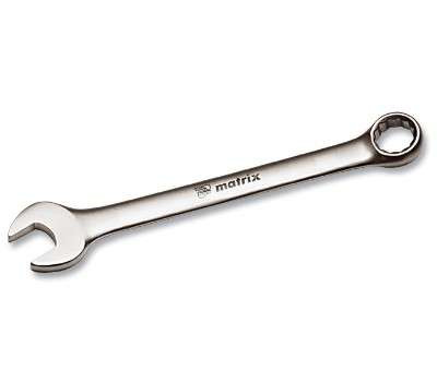 Ключ изготовлен из хромванадиевой стали. Твердость материала рабочей части ключа 45 HRc (требования ГОСТ – 45–51 HRc). Ключ имеет антикоррозионное покрытие из хрома. Профиль кольцевого зева имеет 12 граней, что увеличивает площадь соприкосновения рабочих поверхностей и снижает риск деформации граней крепежа при монтаже. Угол наклона кольцевого зева относительно плоскости ключа в 15 градусов делает монтаж более удобным. Ключ гаечный комбинированный с открытым и кольцевым зевом предназначен для монтажа демонтажа резьбовых соединений.