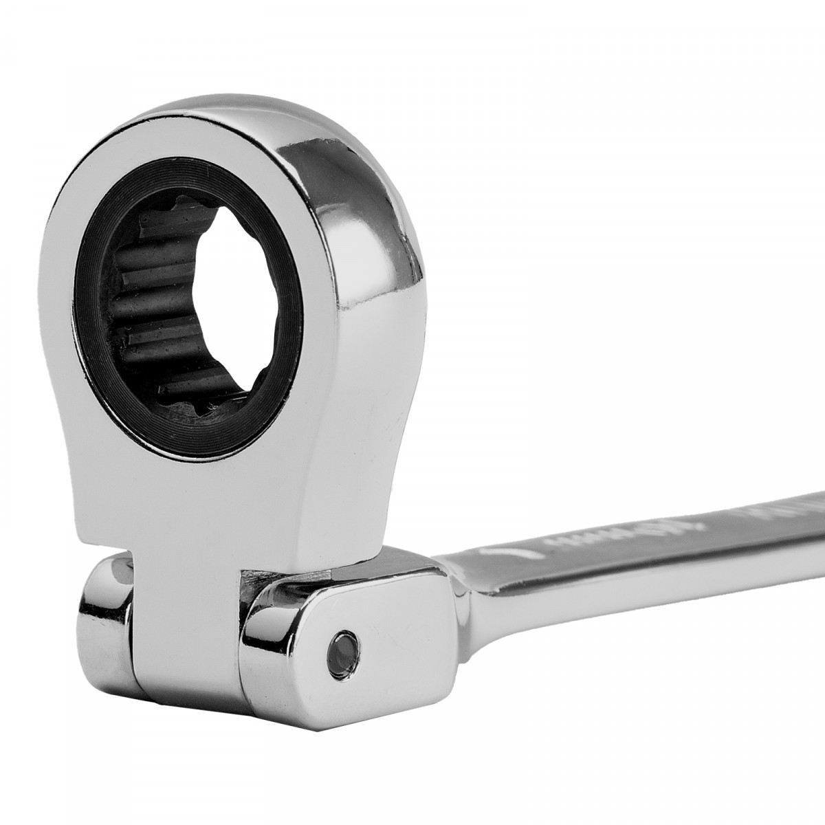 • Удобная работа в труднодоступных местах — храповой механизм на 72 зуба обеспечивает плавное вращение (шаг трещотки составляет 5°), а шарнир позволяет поворачивать рабочую часть под углом.