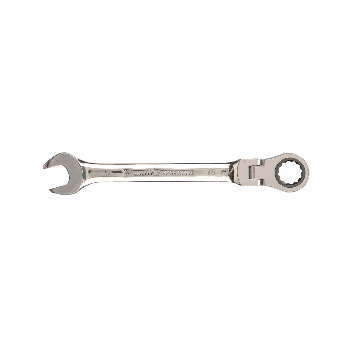 Ключ комбинированный трещоточный, 15 мм, CrV, шарнирный, зеркальный хром Matrix