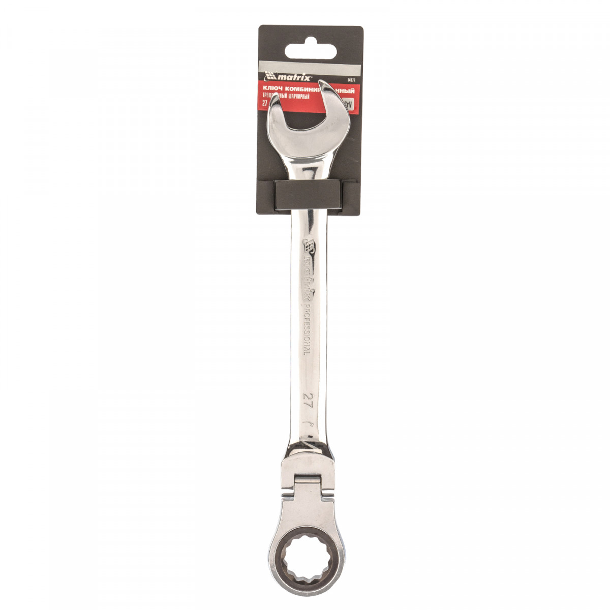Ключ комбинированный трещоточный, 27 мм, CrV, шарнирный, зеркальный хром Matrix