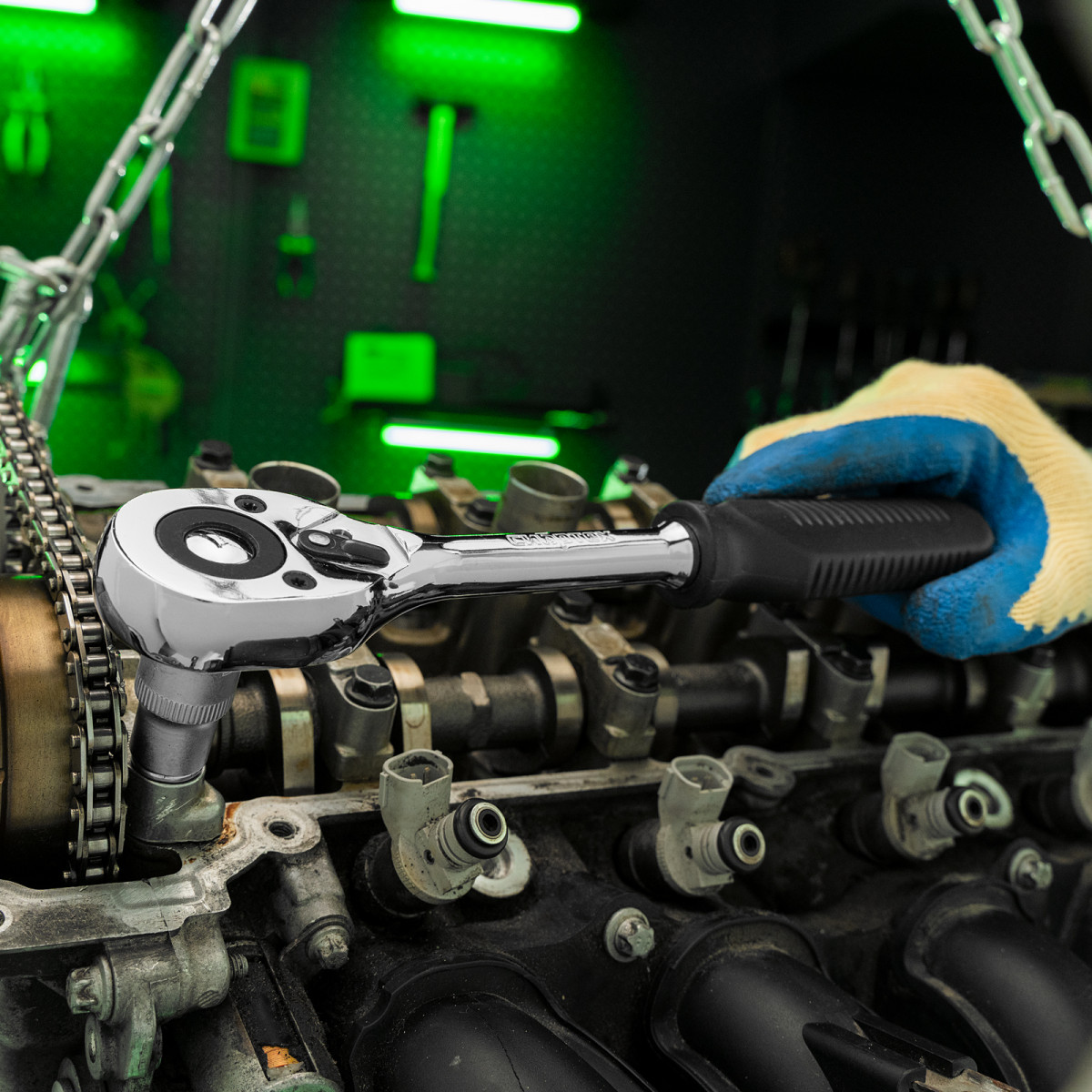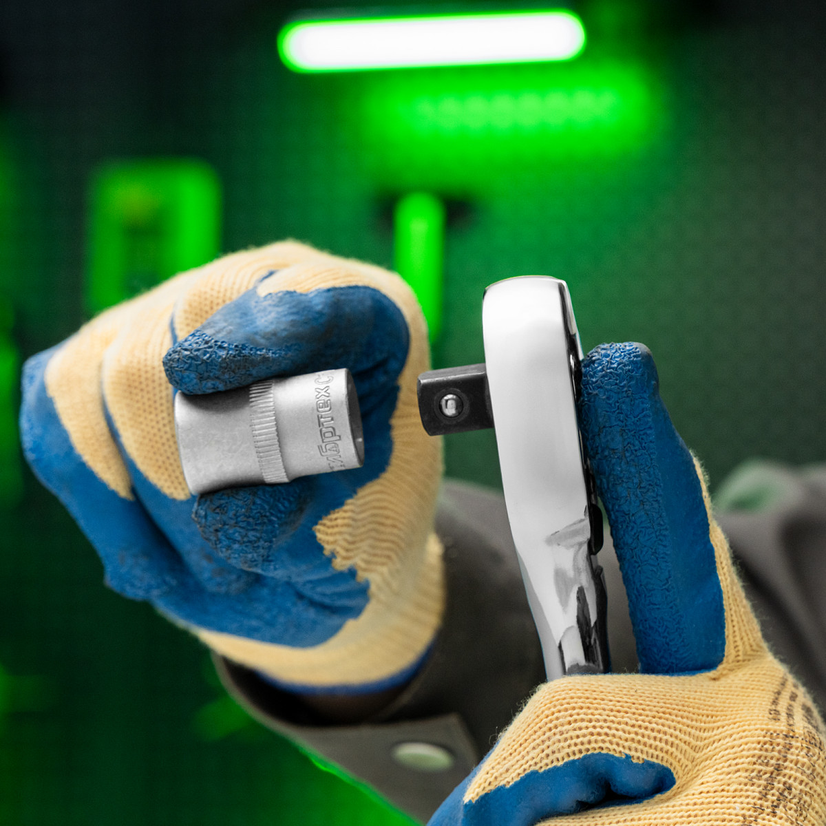 - Надежная фиксация — шариковый замок крепко удерживает торцевую головку, поэтому она не соскочит во время работы.