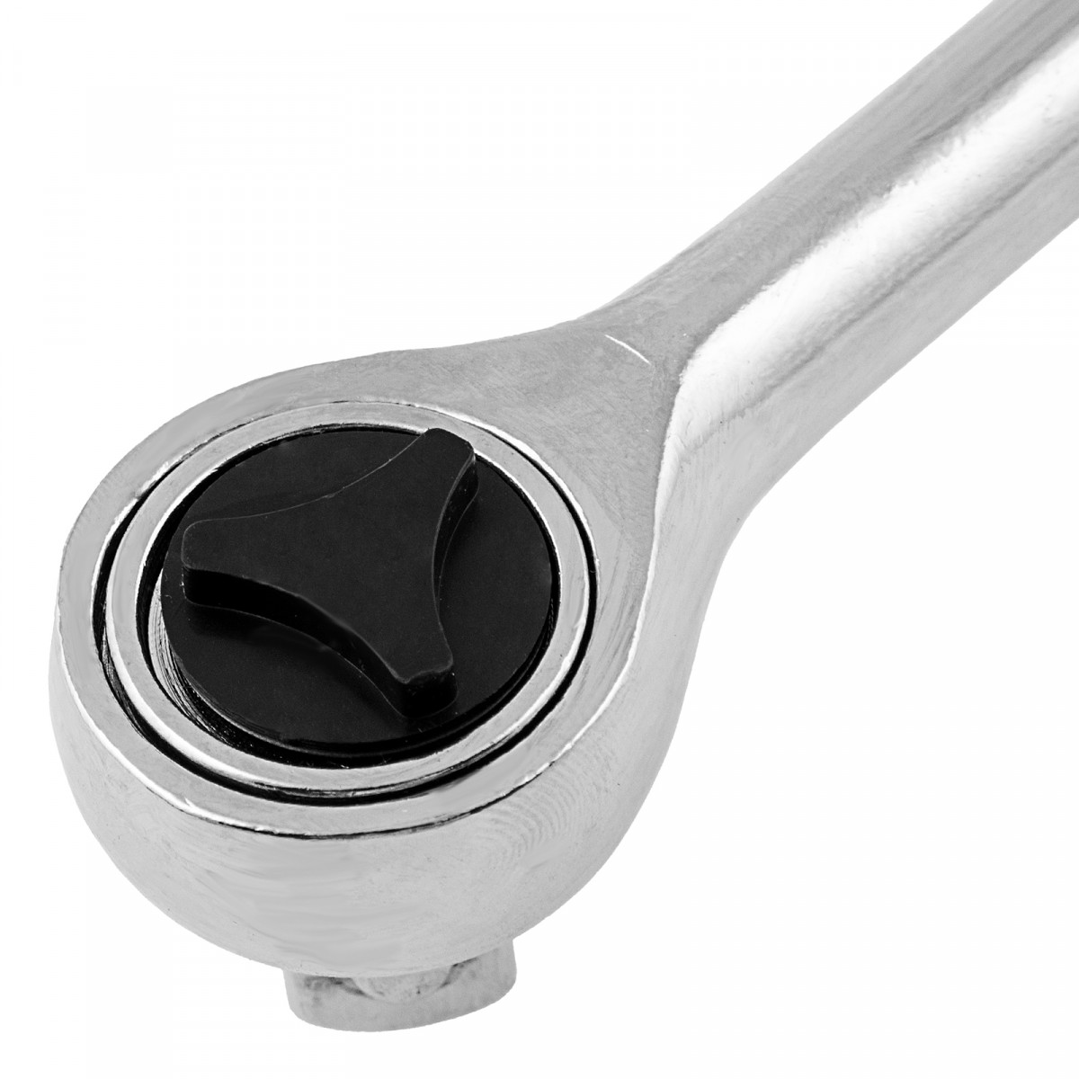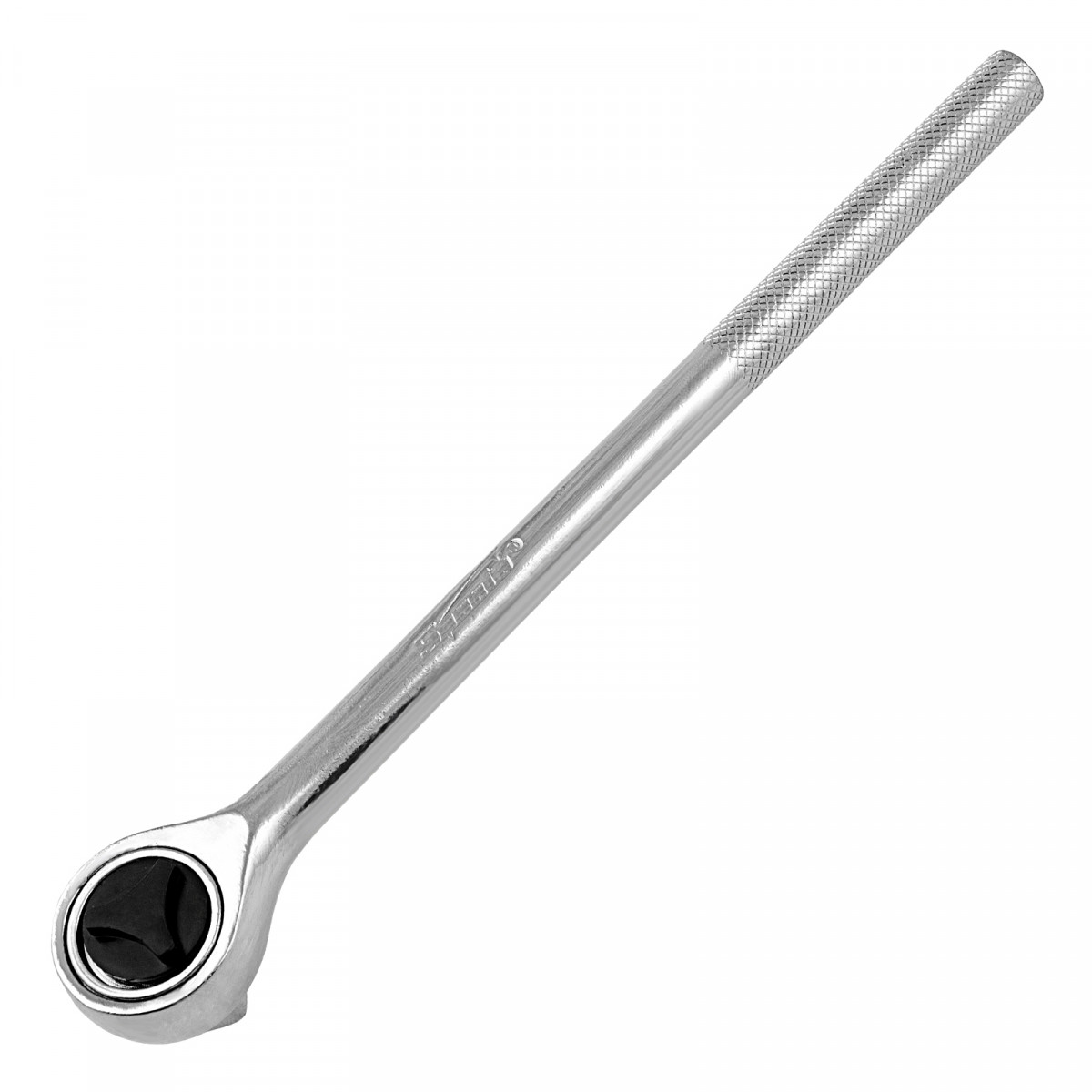 Ключ-трещотка Sparta 140605 из стали CrV, с присоединительным квадратом 1/2" и переключателем, применяется для монтажа и демонтажа болтов и гаек при помощи торцевых головок. Храповой механизм облегчает работу в ограниченном пространстве. Инструмент пригодится в ремонтной мастерской, автосервисе, а также дома или на даче.