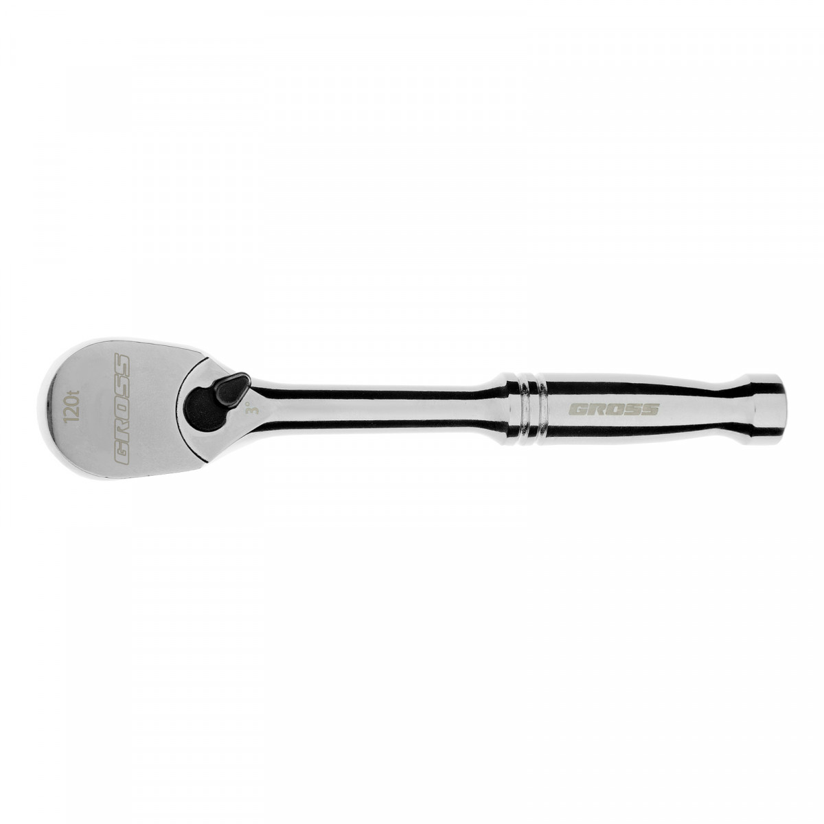 Ключ-трещотка 1/4", CrV, 120 зубьев, цельнометаллический, хром Gross
