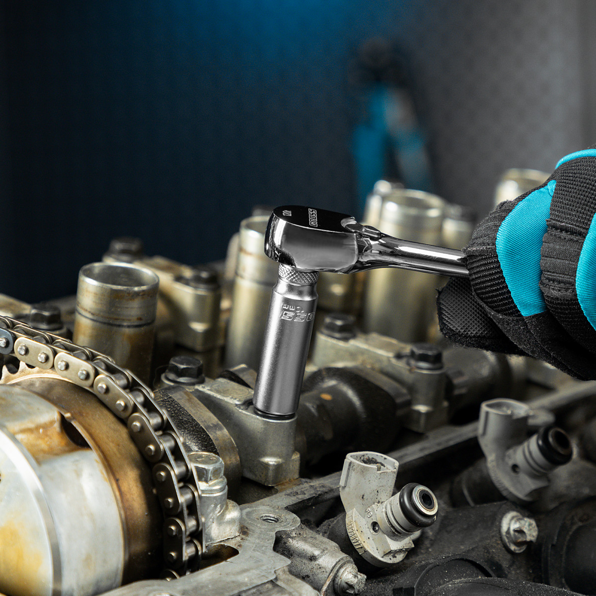 Цельнометаллический ключ-трещотка Gross 14050 с присоединительным квадратом 1/4" оснащен храповым механизмом со 120 зубьями. Предназначен для установки торцевых головок, а также адаптеров и удлинителей с посадочным отверстием соответствующего размера. Шаг храпового механизма составляет 3°, поэтому инструмент оптимален для использования в труднодоступных местах. Будет полезен в сервисном центре, на СТО, а также пригодится дома или в поездке.