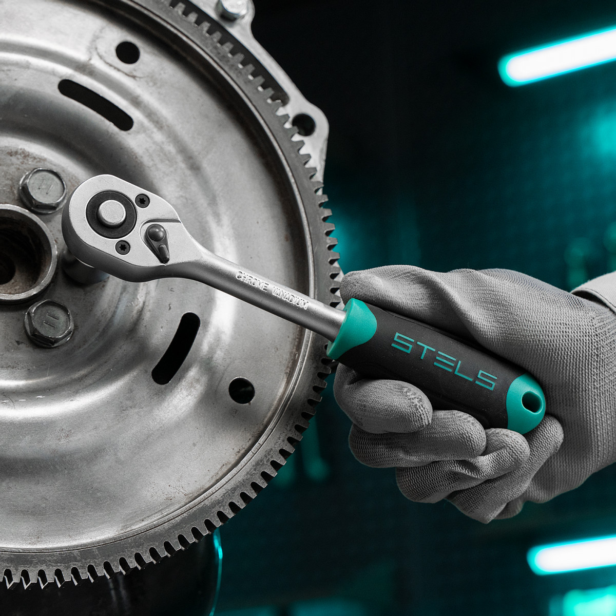 Ключ-трещотка Stels 14026 из стали CrV, с присоединительным квадратом 3/8", 72 зубцами и быстрым сбросом, предназначен для работы с резьбовым крепежом. Совместим с торцевыми головками различных размеров, а также адаптерами и удлинителями. Инструмент работает мягко и плавно благодаря 72-зубому храповому механизму. Шаг трещотки составляет 5°, что облегчает работу в ограниченном пространстве. Инструмент будет полезен в сервисном центре, авторемонтной мастерской, а также пригодится дома, в гараже или на даче.