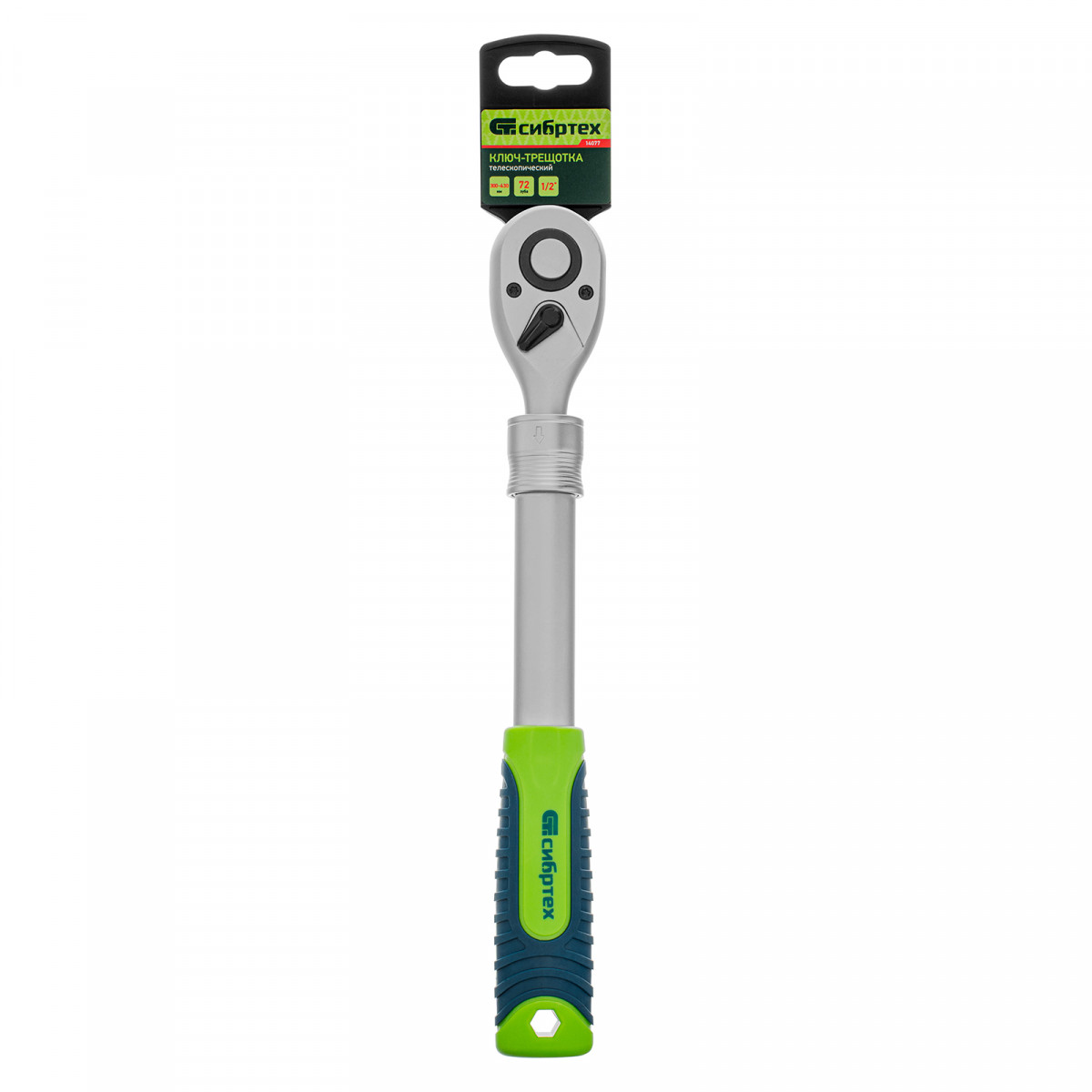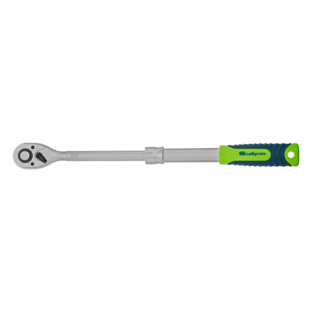 Ключ-трещотка телескопический 1/2", 300-430 мм, 72 зуба, с быстрым сбросом Сибртех
