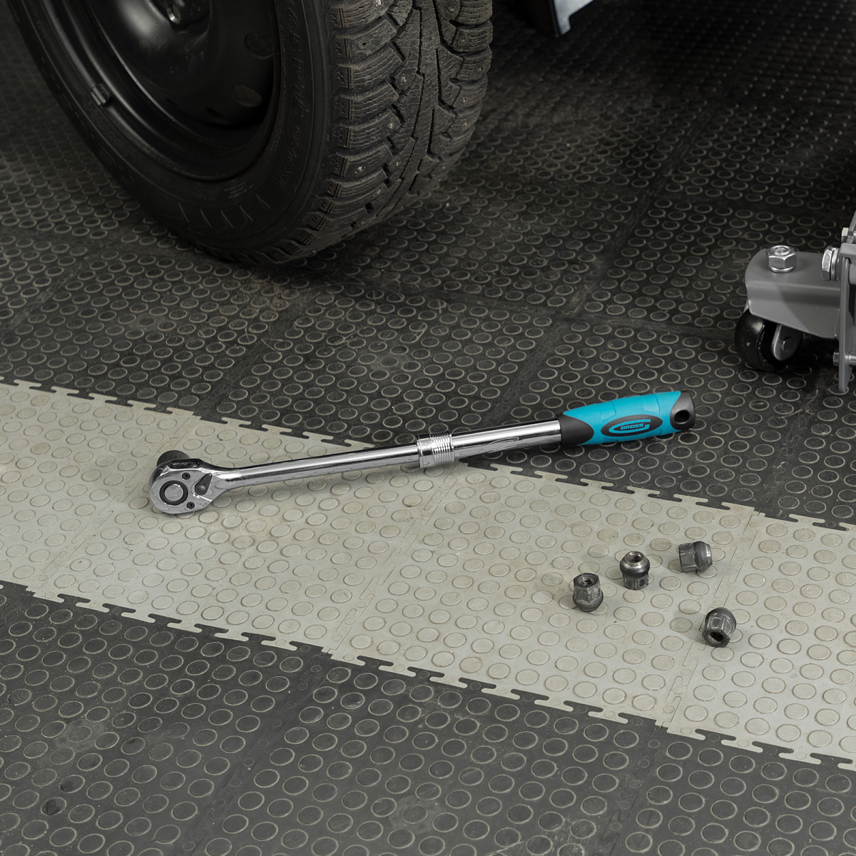 - Высокая износостойкость — ключ-трещотка изготовлен из прочной стали хромованадиевой группы.
