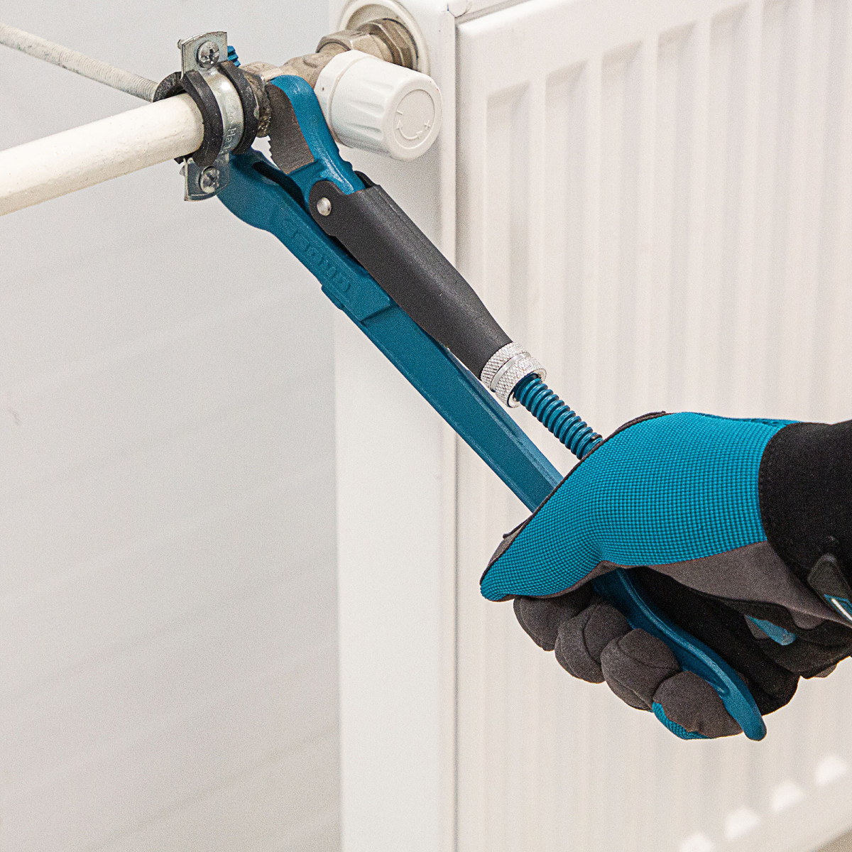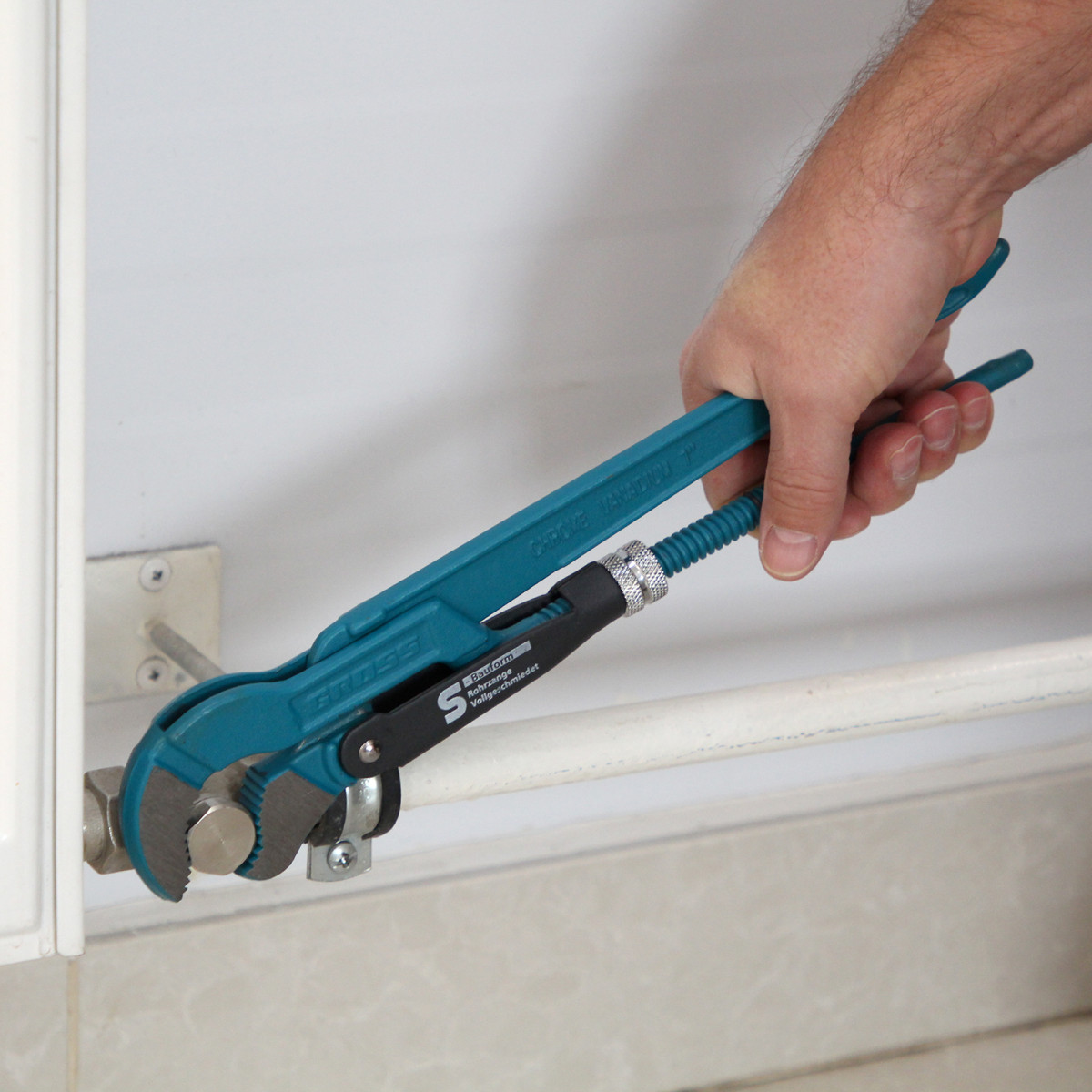 Цельнокованый трубный рычажный ключ Gross №1 15611 из стали CrV, тип «S», предназначен для захвата и вращения труб и соединительных деталей диаметром 1″. Ключ S-образной формы крепко захватывает плоские и объемные предметы, а также позволяет работать в труднодоступных местах. Рычажный механизм увеличивает прикладываемое усилие, что снижает усталость мастера. Инструмент выдерживает интенсивное использование, поэтому пригодится сотрудникам автосервиса, коммунальных служб, а также будет полезен в быту.