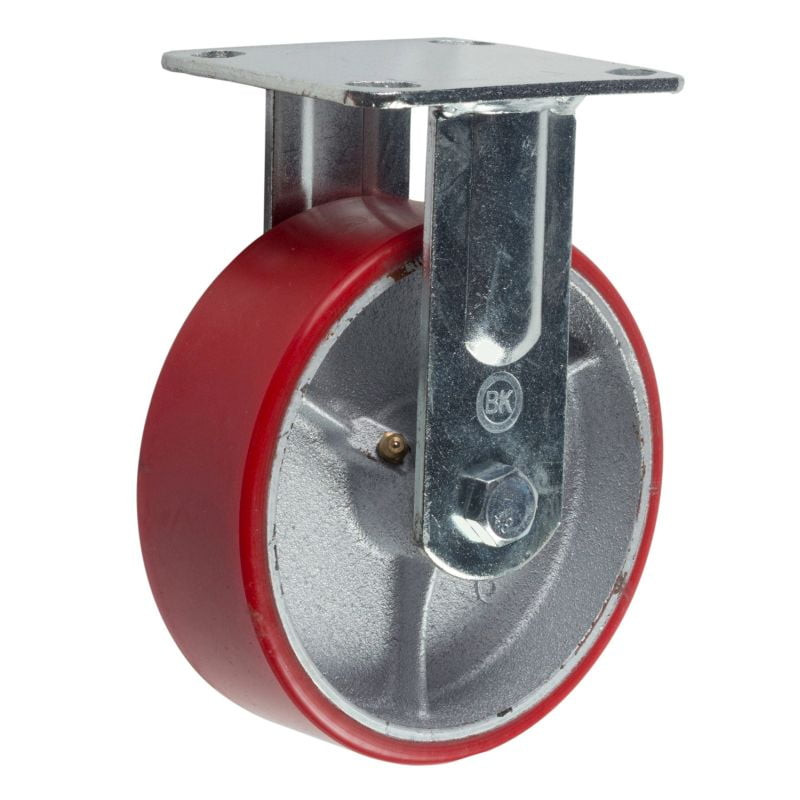 Колесо полиуретановое большегрузное неповоротное FCp46 для тачек и тележек является самыми грузоподъемным из всех колес, представленных в интернет-каталоге. Чугун служит основой для производства обода неповоротных полиуретановых колесных опор FCp46.