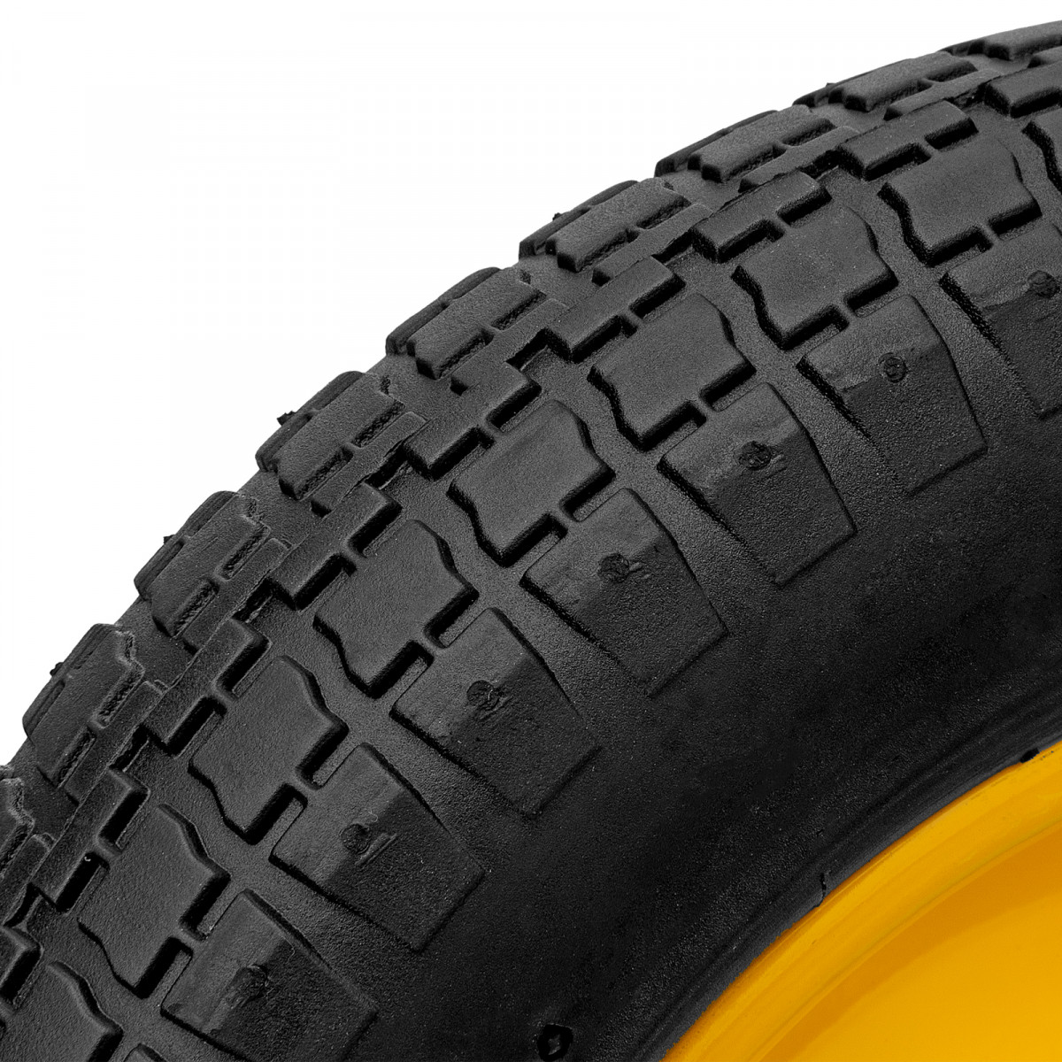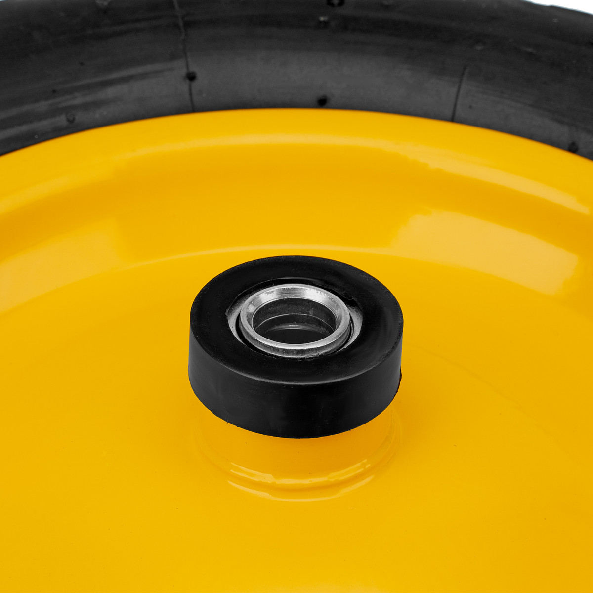 - Комфортная работа — пневматическое колесо эффективно поглощает вибрации даже при полной загрузке тачки.