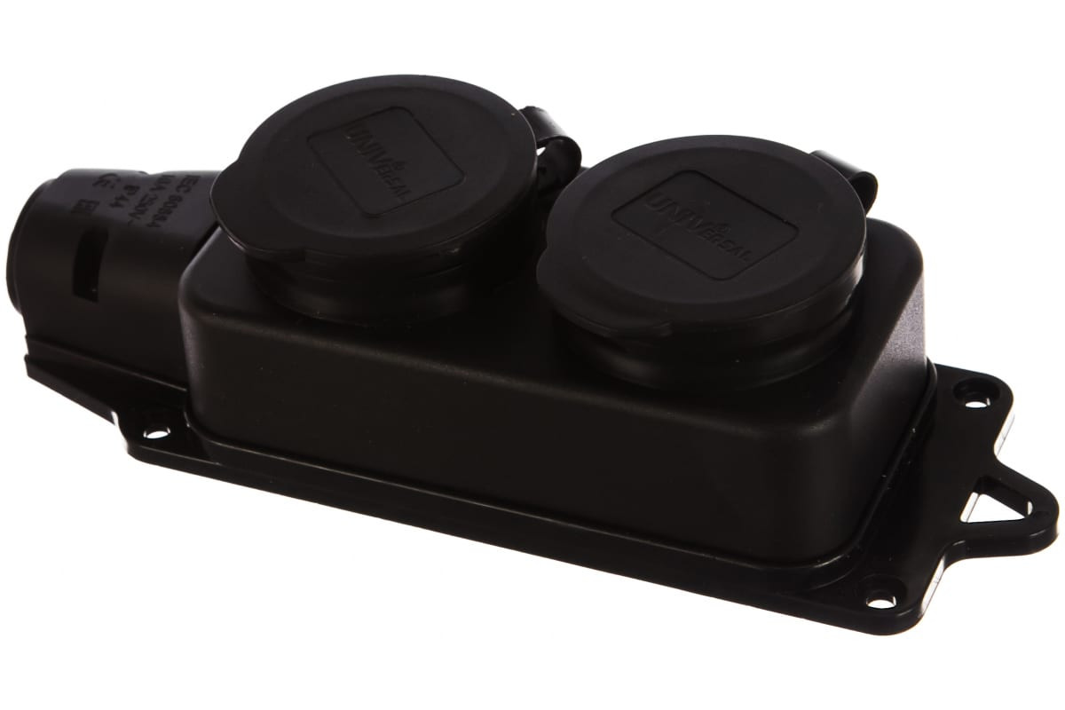 Колодка 2-м однофазная с заглушками каучук UNIVersal 1027: защитные крышки для каждого розеточного гнезда.