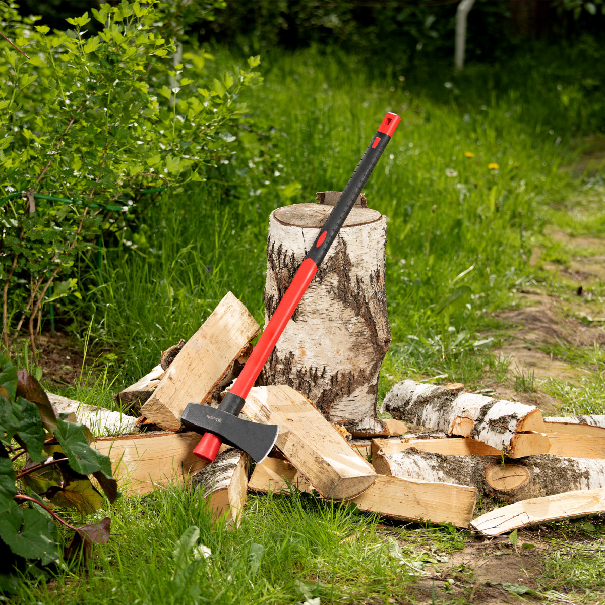 • Большая сила удара — колун оснащен длинной рукояткой 900 мм, полотно весит 3,6 кг.