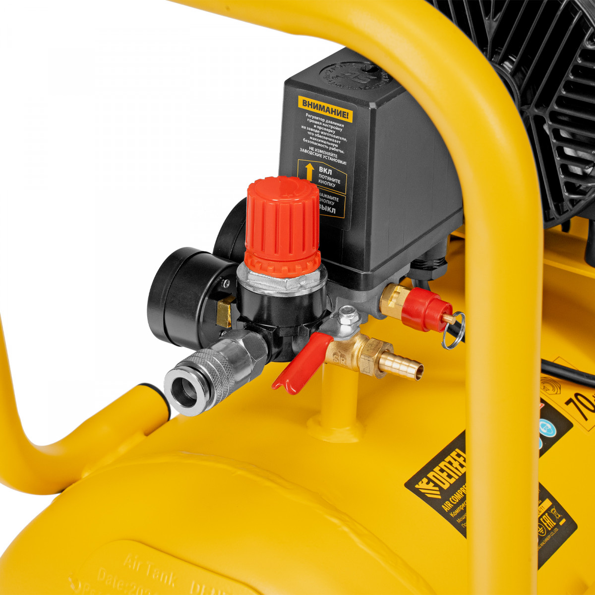 - Удобный контроль работы — компрессор оснащен 2 манометрами для отслеживания давления в ресивере и пневмолинии