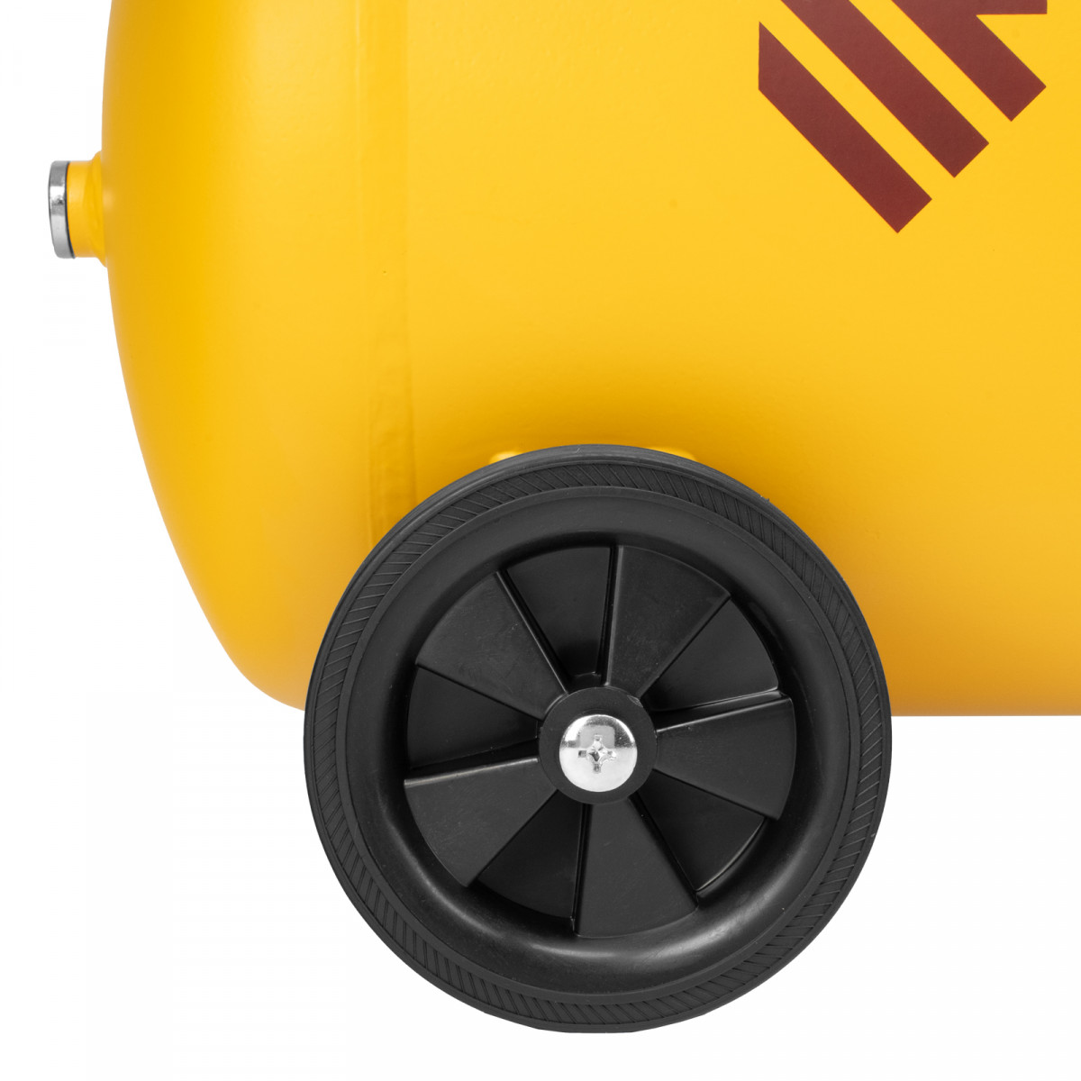 - Мобильность — 2 колеса и транспортировочная рукоятка упрощают перемещение компрессора по рабочей зоне.