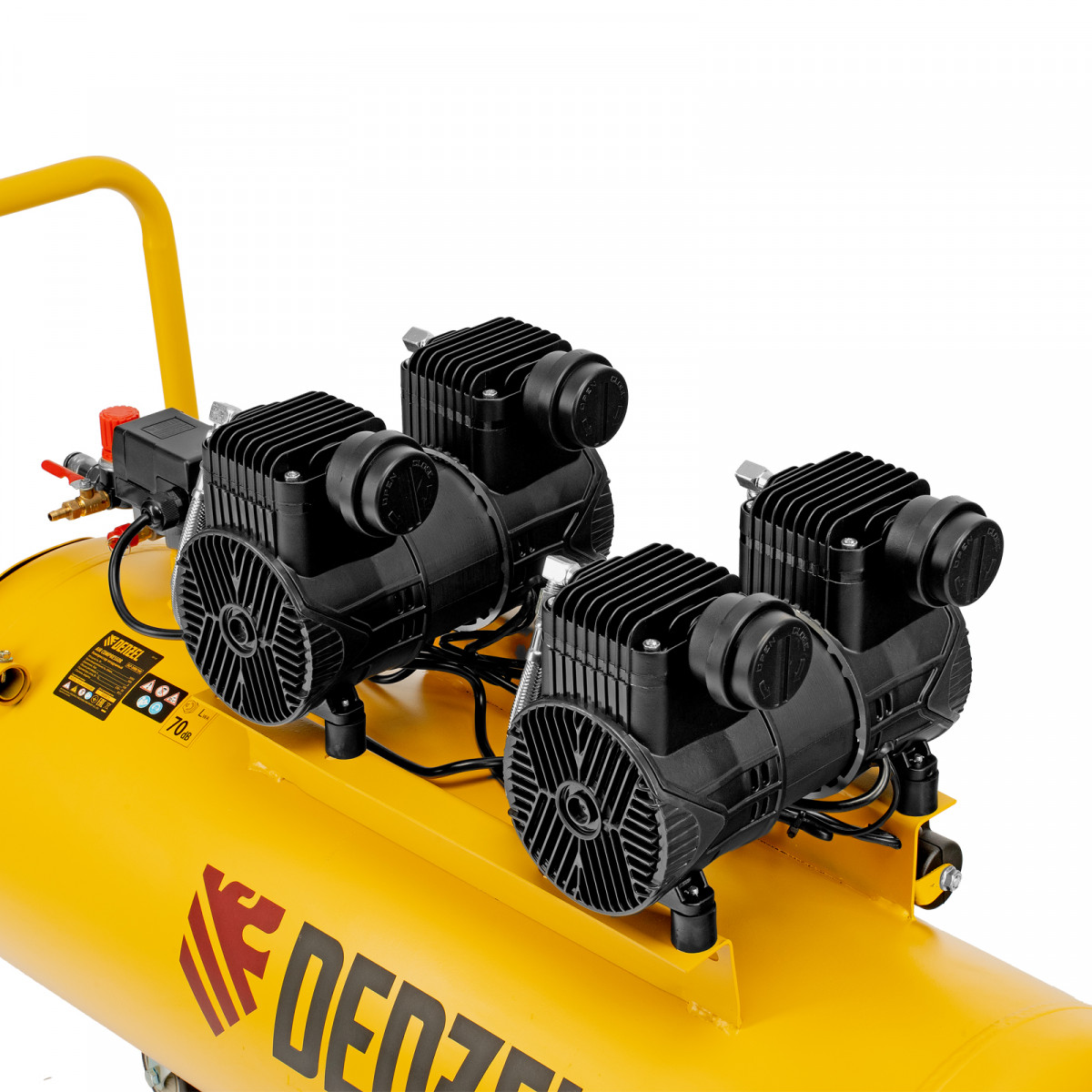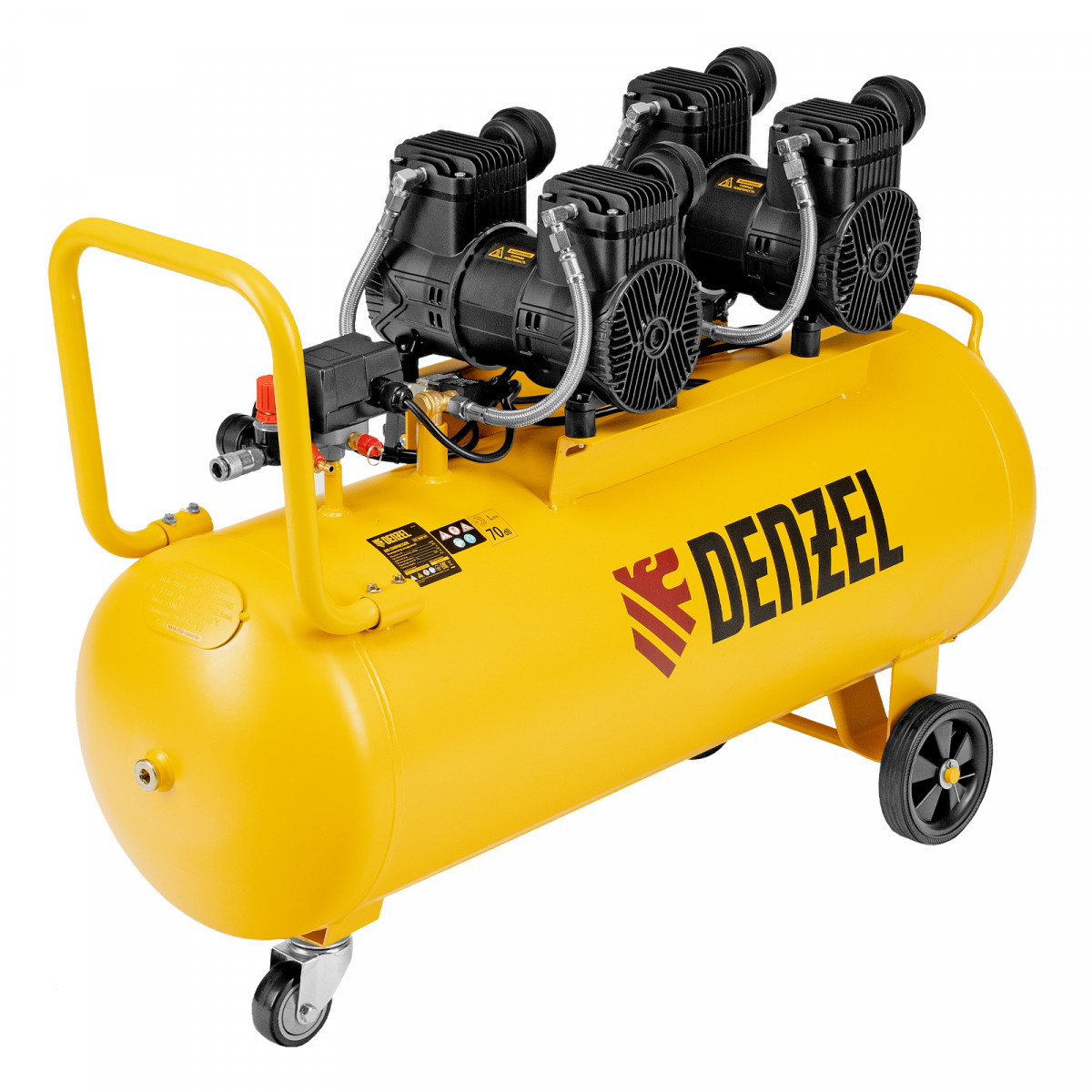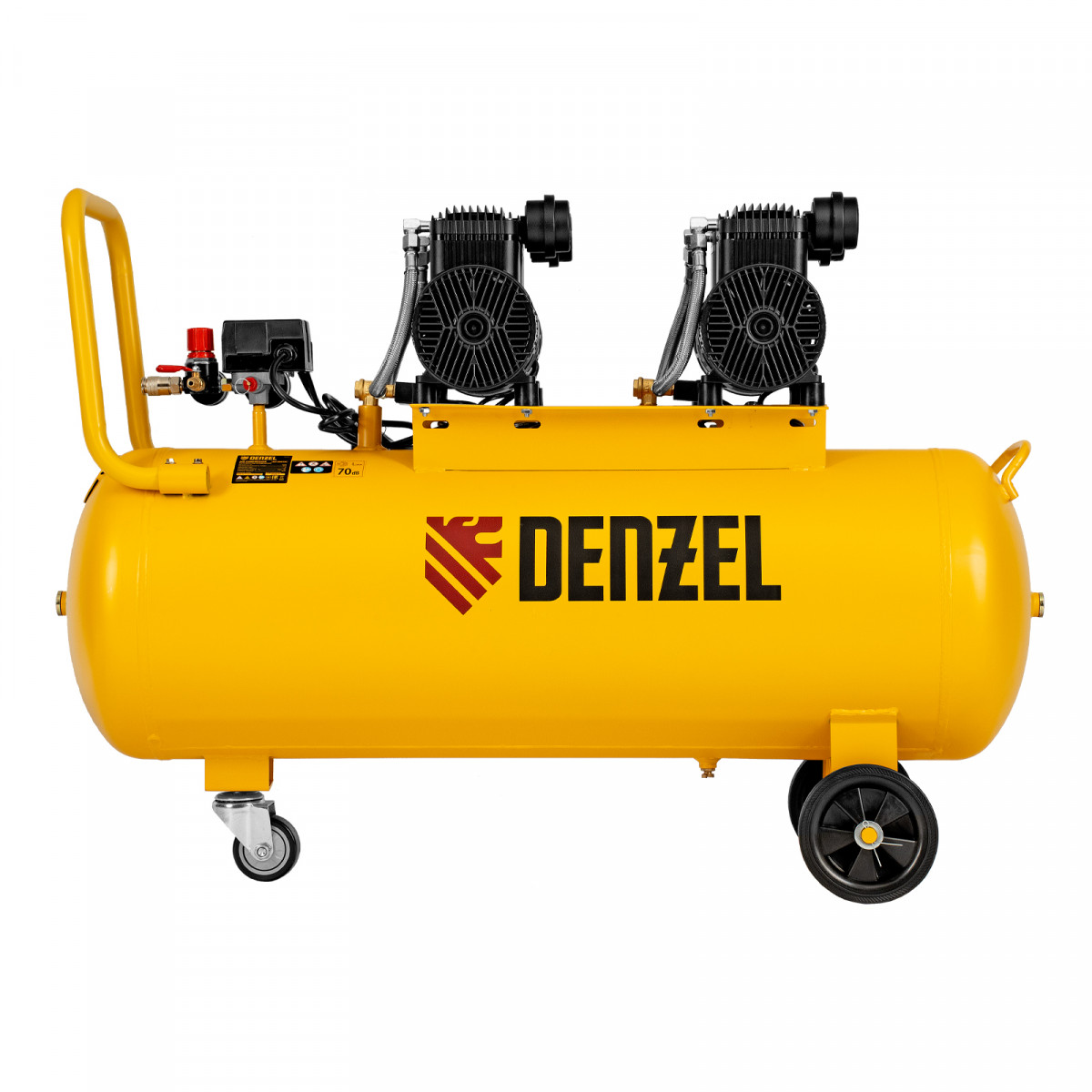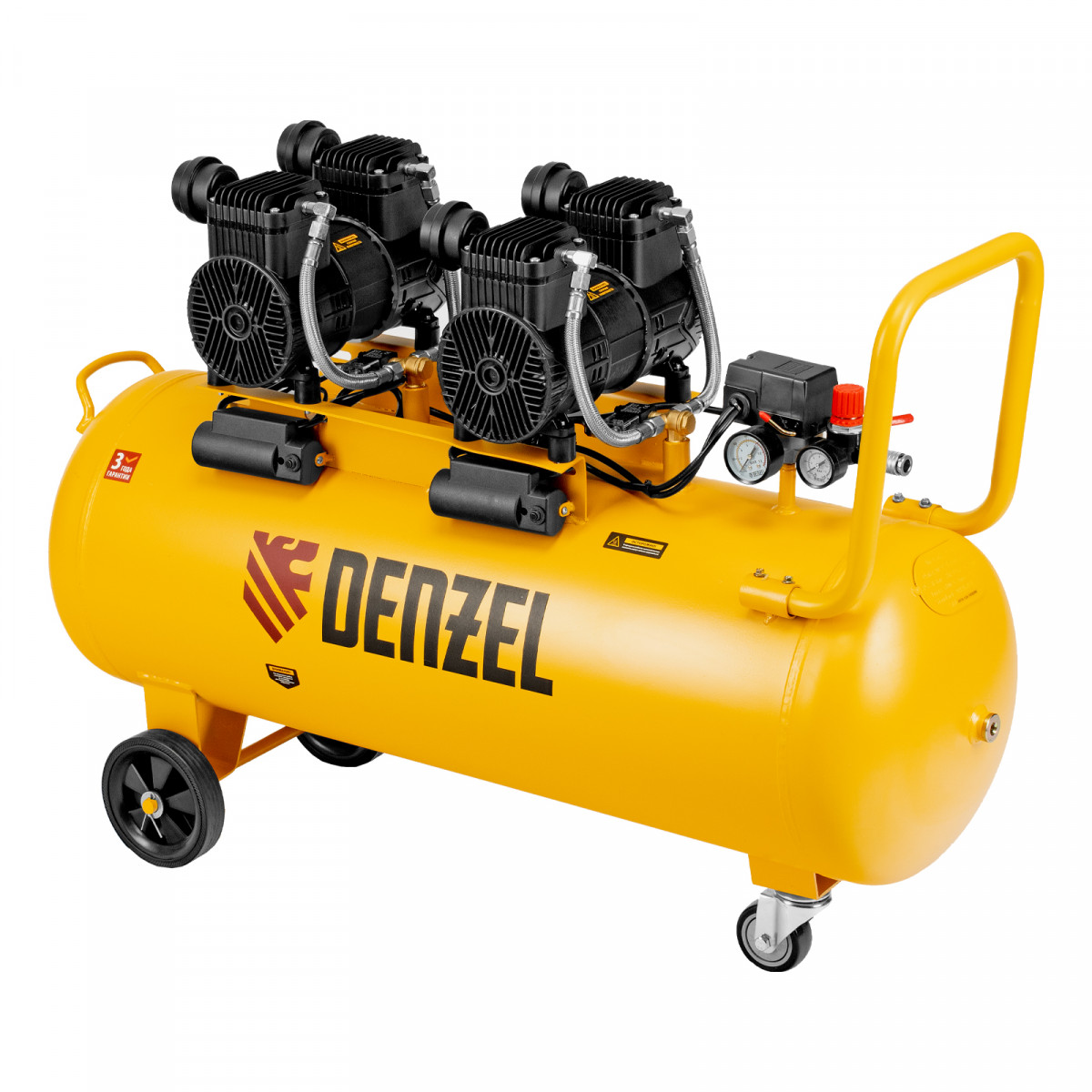Компрессор безмасл. малошумный DLP-3000/100, 3 кВт, 2х1,5 кВт,100 л, 2850 об/мин,500 л/мин Denzel