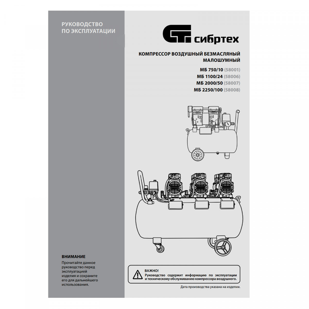 Компрессор безмаслянный малошумный МБ 750/10,750 Вт, 10 л, 150 л/мин Сибртех