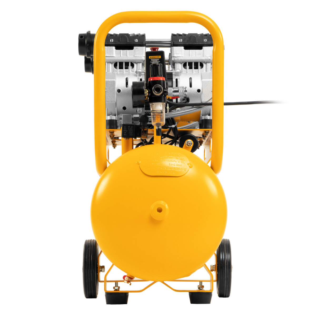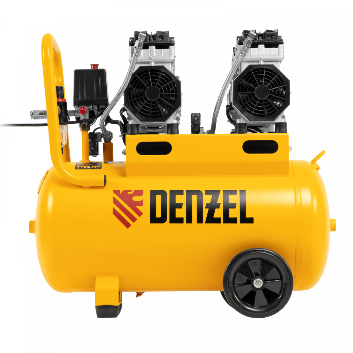 Компрессор безмасляный, малошумный DLS 1500/50, 1500 ВТ, 2x750, 50 л, 260 л/мин Denzel