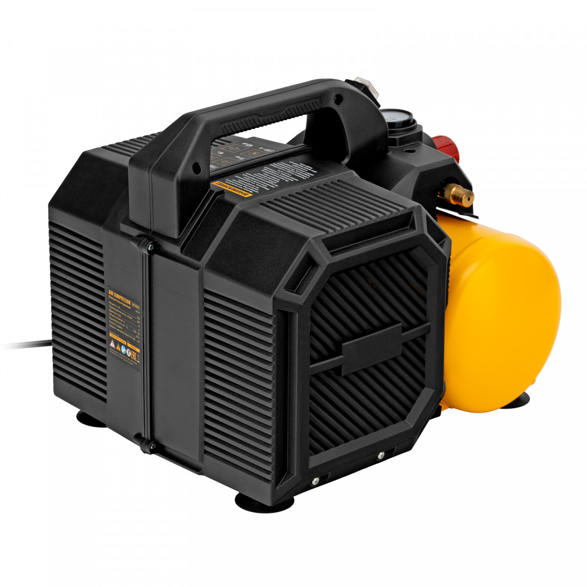 Компрессор безмасляный малошумный Denzel DLS750/6 58019 мощностью 750 Вт, с ресивером объемом 6 л, имеет производительность на входе 140 л/мин и предназначен для обеспечения пневмоинструмента сжатым воздухом. Оптимален для работы с краскораспылителем и продувочным пистолетом, т.к. воздух на выходе не содержит частиц масла. Рабочий узел закрыт сплошным кожухом, благодаря чему уровень шума во время работы не превышает 65 дБ. Компрессор можно использовать в жилом помещении и на дачном участке.