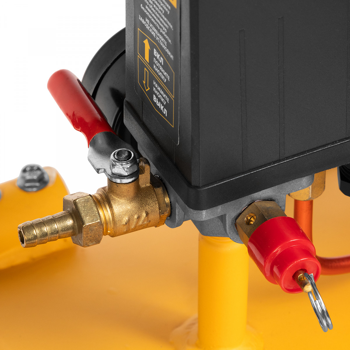 • Клапан для слива конденсата — скопившаяся за день влага и оставшийся воздух быстро удаляются из ресивера, что обеспечивает защиту от коррозии.