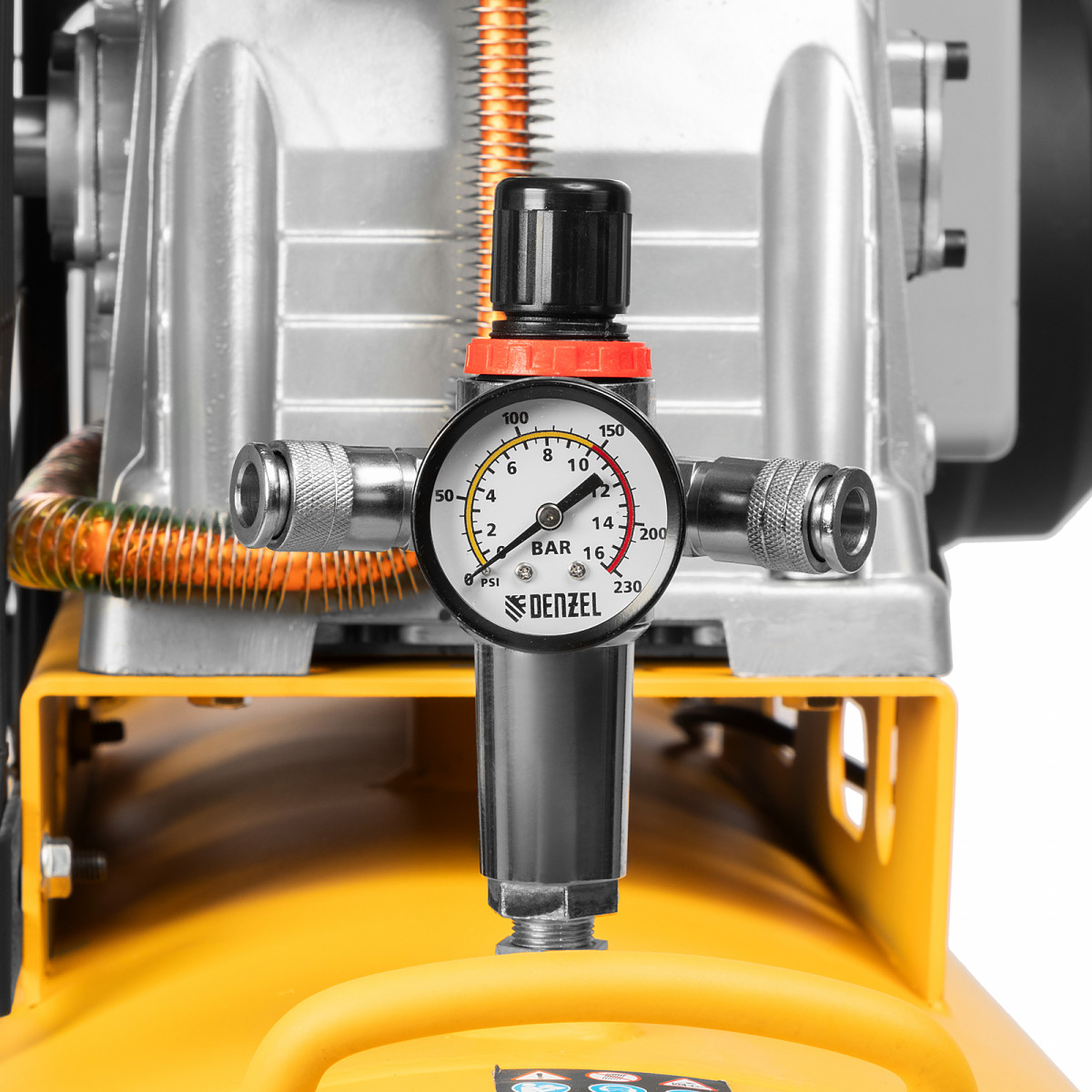 • 2 больших манометра — мастеру удобно отслеживать давление в ресивере и на выходной магистрали.