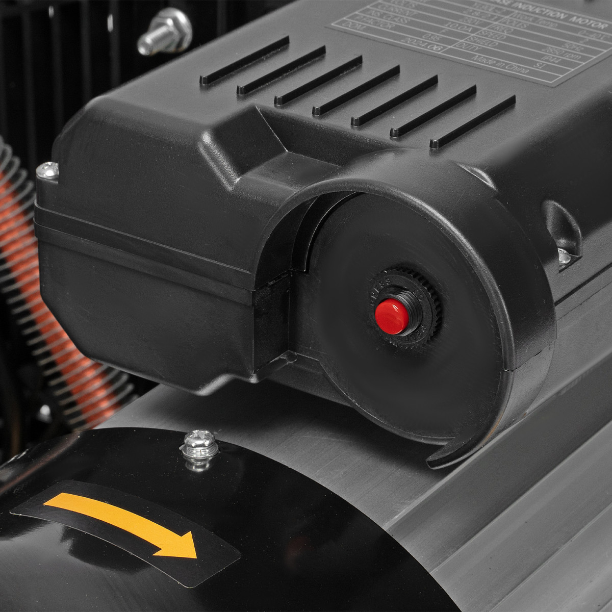 - Автономная работа — прессостат останавливает компрессор по достижении максимального рабочего давления 8 бар и запускает его, если давление падает ниже допустимого уровня.