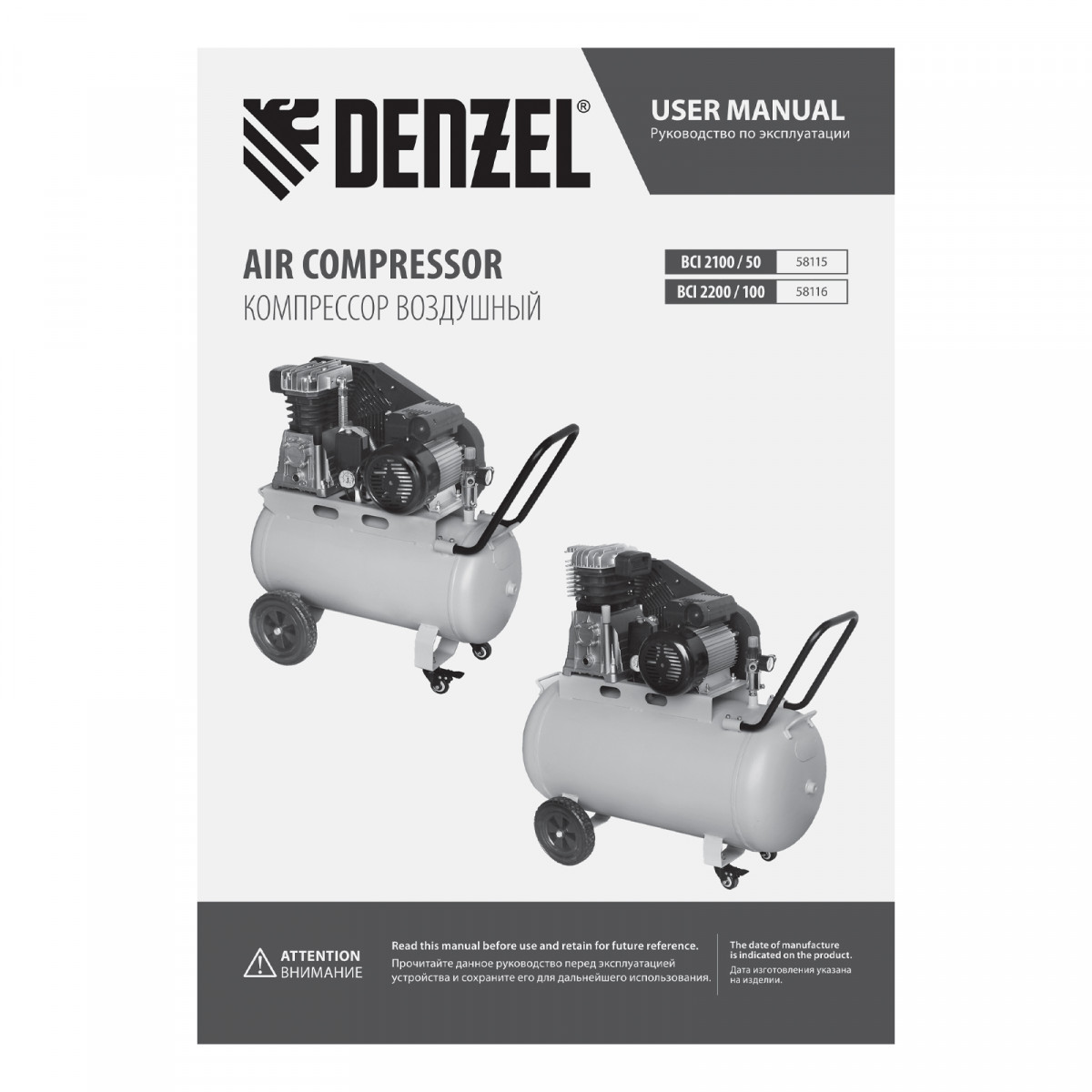 Компрессор воздушный рем. привод BCI 2100/50, 2,1 кВт, 50 литров, 400 л/мин Denzel