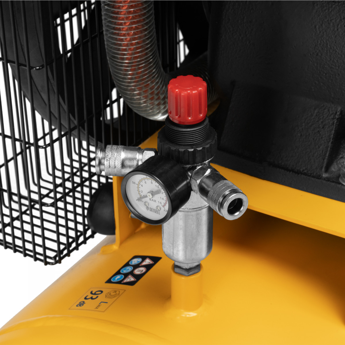 • Удобный контроль давления в ресивере и пневмомагистрали — компрессор оснащен двумя механическими манометрами.