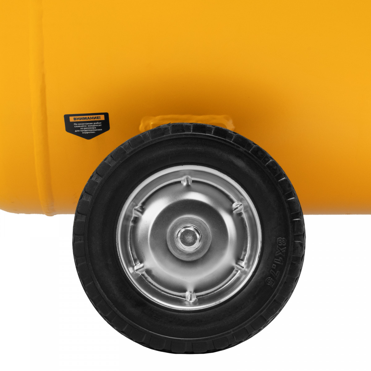 • Удобная транспортировка — на компрессоре установлены колеса, в т. ч. поворотные, и П-образная рукоятка.