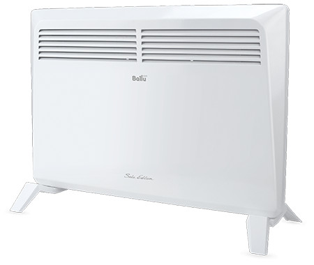 Бытовой электрический обогреватель на ножках конвективного типа торговой марки Ballu серии Solo. Цвет – белый.