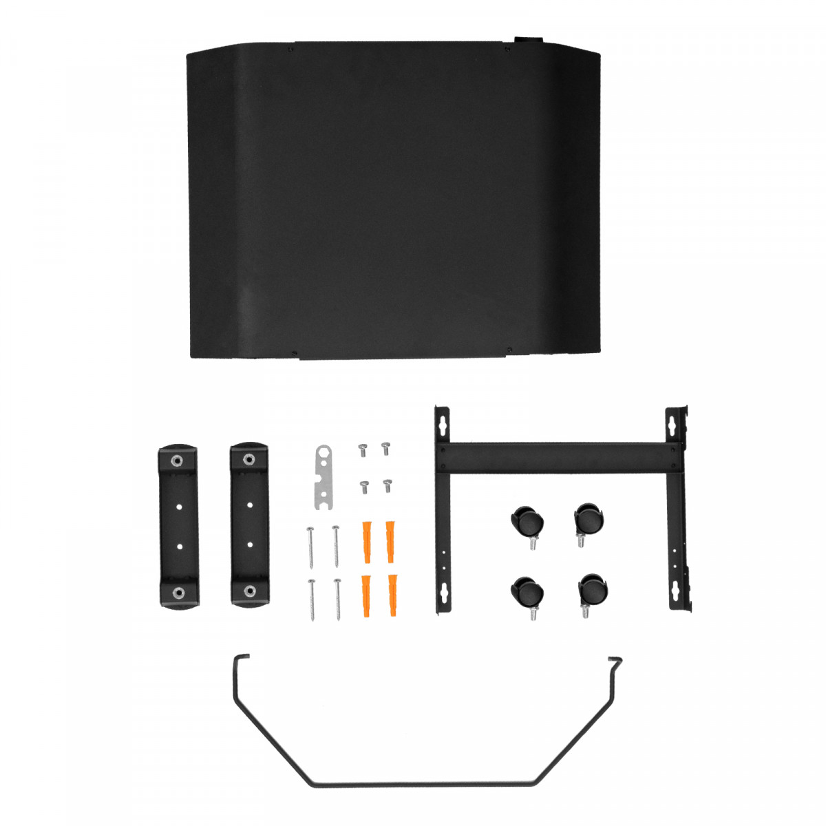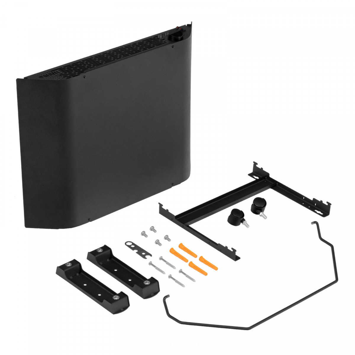 • Напольная или настенная установка — в комплект поставки включена цельнометаллическая крепежная рамка для стены, а также стальные ножки с колесами.