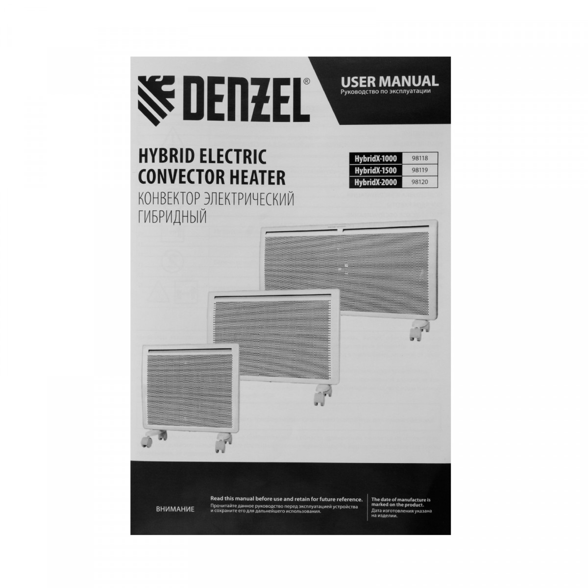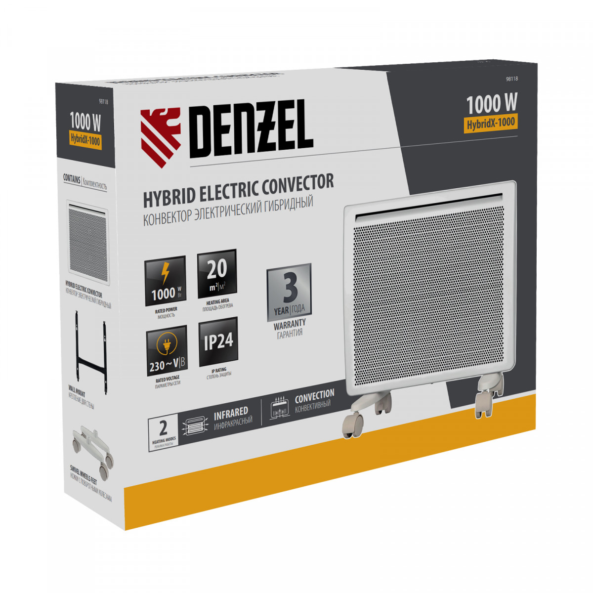 Конвектор гибридный электрический HybridX-1000, ИК нагреватель, цифровой термостат Denzel