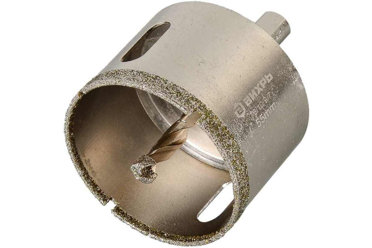 Коронка алмазная по керамограниту/керамике 55 мм Вихрь 73/10/9/7 предназначена для сверления отверстий в керамограните или природном камне.
