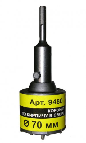 Буровая коронка является сменным элементом для ударных дрелей и перфораторов. Применяется для сверления отверстий в кирпиче. В конструкции коронки предусмотрено сверло для центрирования. Коронка имеет хвостовик SDS-plus. При установке в патрон хвостовик необходимо смазывать.