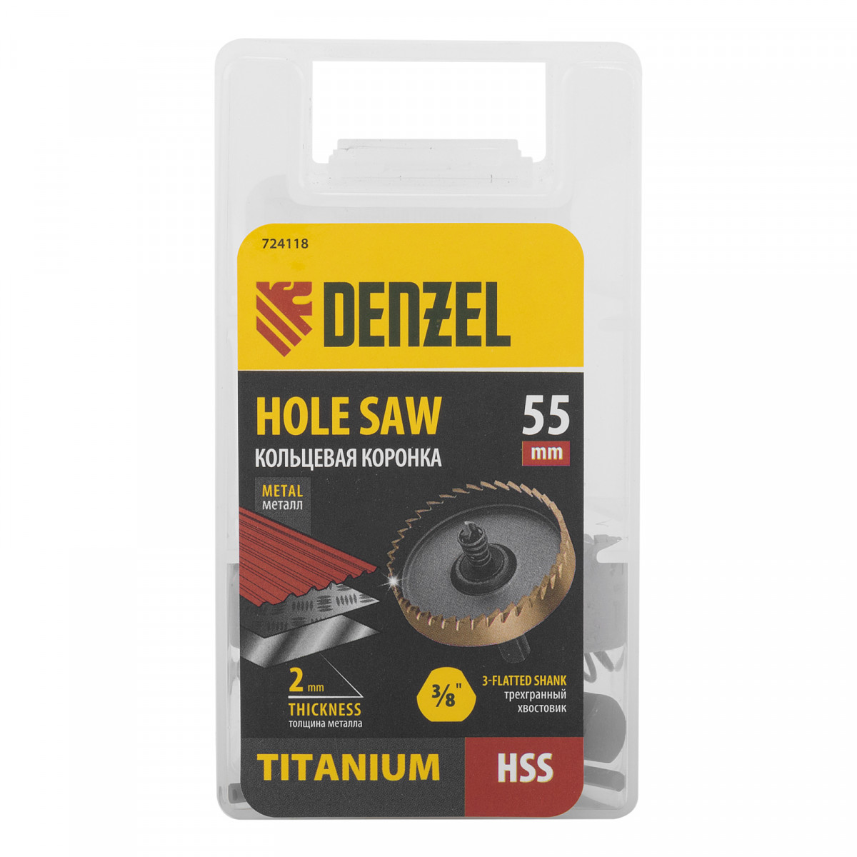 Коронка по металлу HSS, 55 мм, нитридтитановое покрытие Denzel