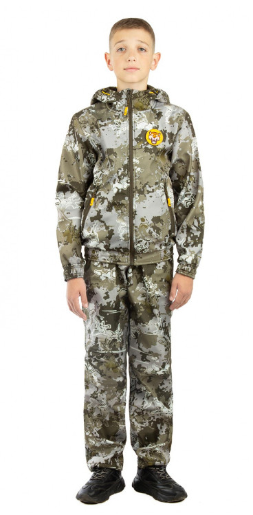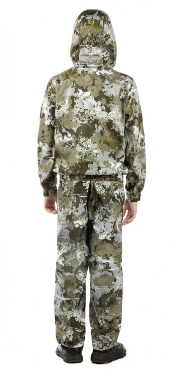 Для изготовления этого костюма применяется ткань полофлис, обладащая хорошей ветрозащитой, практически не впитывает влагу, быстро сохнет, не вызывает аллергии. Низ укороченной куртки собран на широкую простроченную резинку, обеспечивая комфортное прилегание по бедрам. Капюшон регулируется по овалу лица. Застежка-молния защищена внутренней ветрозащитной планкой. Манжеты рукавов снабжены широкой резинкой, которая не передавливает и не натирает кожу, и в тоже время достаточно плотная, чтобы не пропускать ветер. На куртке два верхних накладных кармана с клапанами на кнопках и два нижних прорезных с листочками. Брюки по низу регулируются утяжками. Пояс брюк на широкой резинке, снабжен шлевками, дополнительно регулируется шнурками. Рекомендуется для всех любителей активного отдыха, туристов, а также охотников и рыболовов.