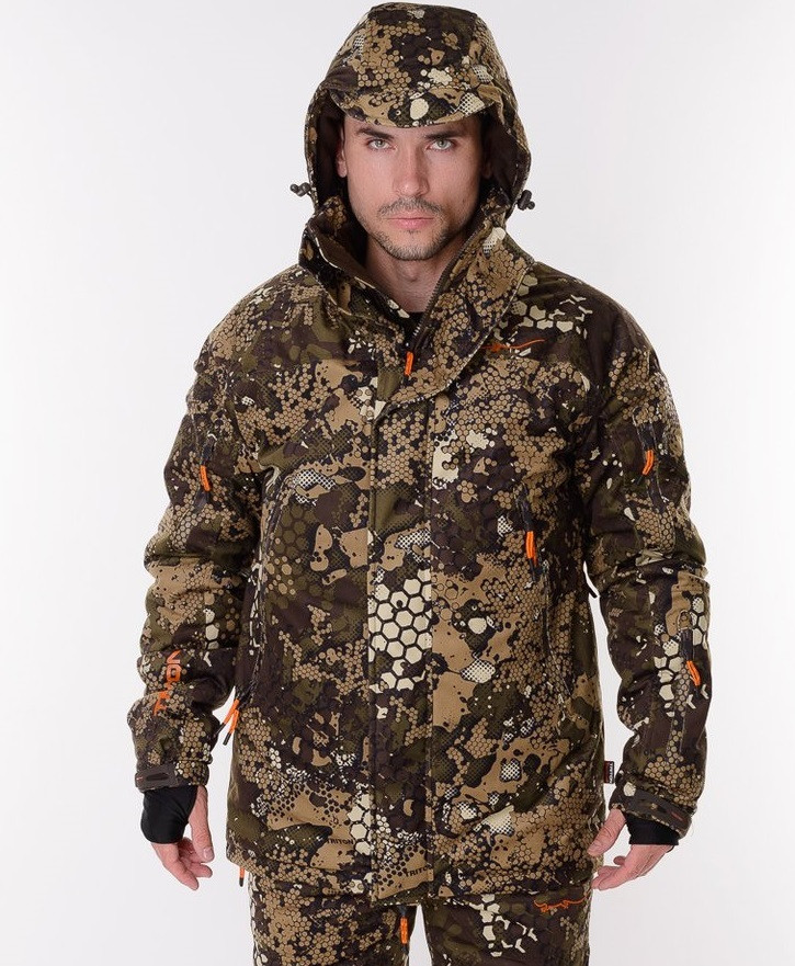Костюм подходит для охоты рыбалки и активного отдыха, создает дополнительную защиту от ветра и непогоды. Температурный режим до -15. Рукав рубашечный; Застёжка центральная с двухзамковой молние Высокий воротник-стойка 5 карманов внешних и 3 внутренних Вентиляция в подмышечной зоне Съёмный капюшон на молнии,с регулировкой объёма и ширины на фиксаторах В кокетке на спине полукольцо для переноса груза В рукаве ветрозащитная муфта с отверстием для большого пальца Ширина низа рукава регулируется патой с контактной лентой и эластичной тесьмой Внутренний воротник с вставкой из флиса По низу внутренняя кулиса регулируется по ширине шляпной резинкой и 2-мя фиксаторами на 2 отверстия. Вентиляция по боку на молнию; На поясе застёжка-гульфик на молнии и 2-х кнопках; Пояс с эластичными вставками; 2 лямки спереди крепятся фастексами к поясу полукомбинезона и к съёмному спинику на молнии; По низу шлица на молнии и шляпная резинка с регулировкой ширины на фиксаторах с одним отверстием
