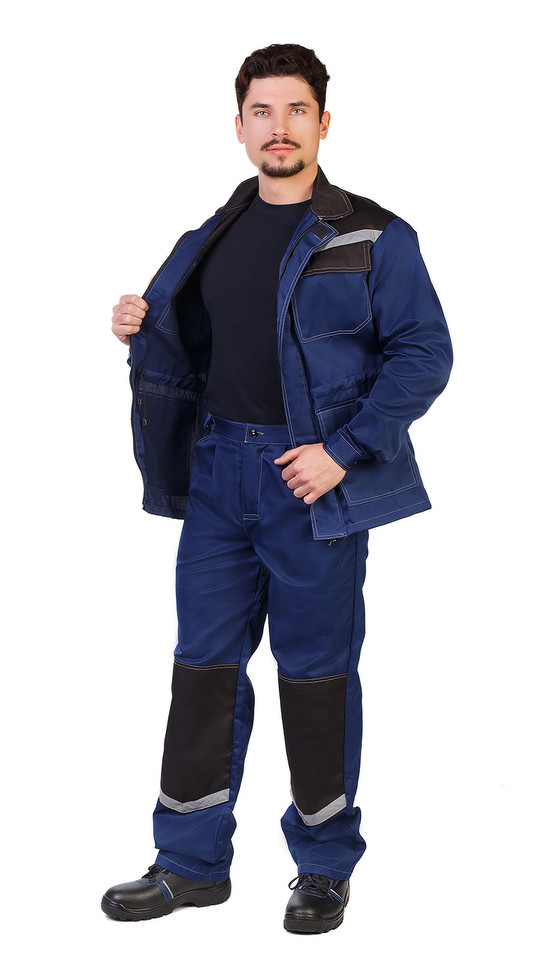 Костюм летний Ударник куртка, брюки т.синий с черным тк.Саржа Формекс