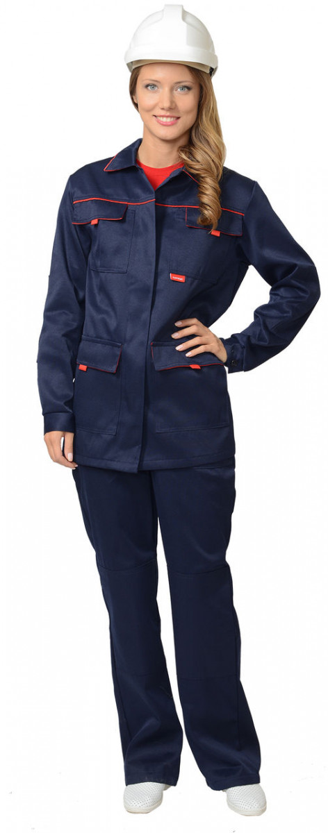 Костюм жен. "Ударница" куртка, п/к темно-синий с красным кантом ОРБИТА