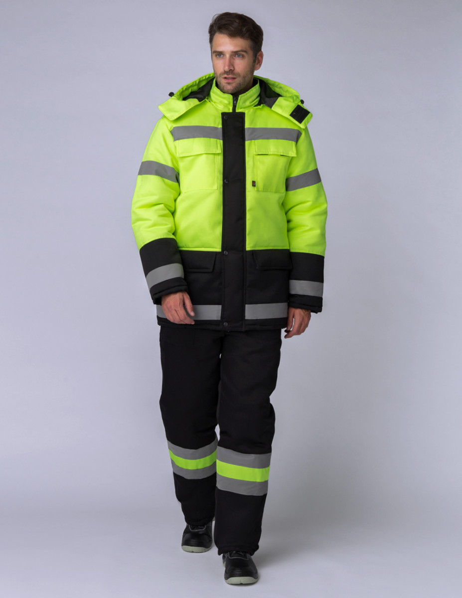 Костюм зимний ДОРОЖНИК брюки, лимонный/черный тк.Смесовая