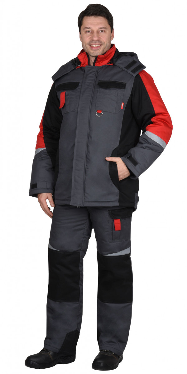 Костюм зимний ФАВОРИТ-МЕГА куртка длин.+п/к темно-серый/черный/красный СОП